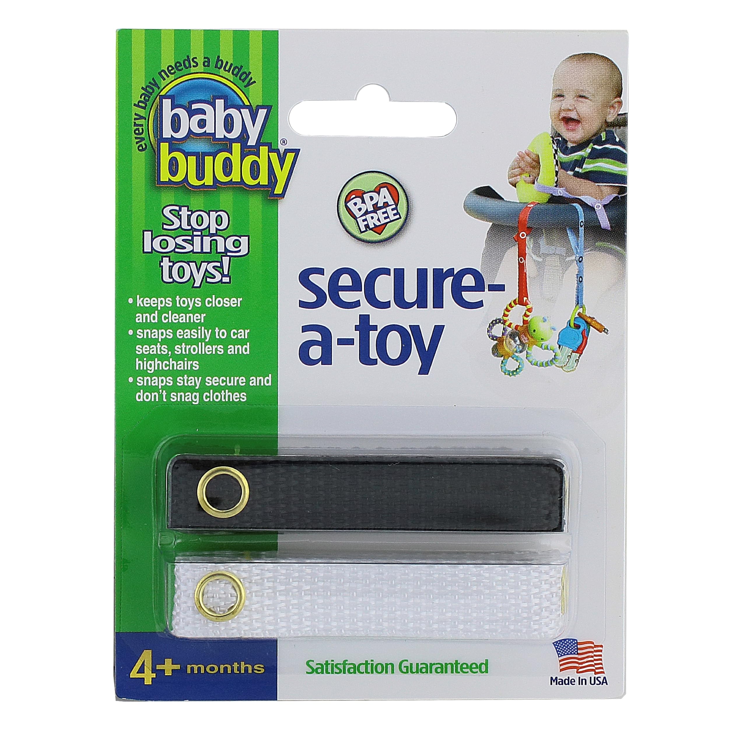 Baby Buddy Secure-a-Toy, Adjustable Pacifier and Teether Strap for Stroller, Highchair, and Car Seat, Black White, 2 pack
