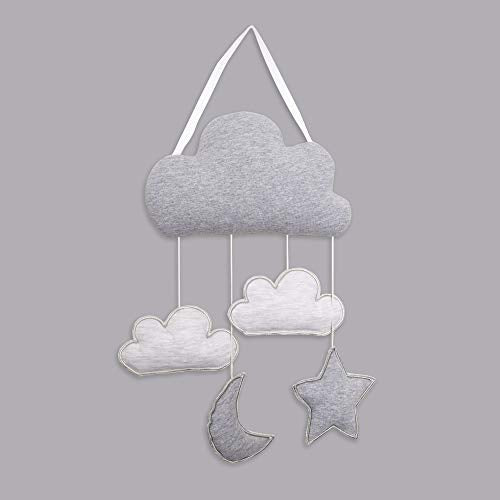 Baby’s First by Nemcor Baby Nursery Wall Hanging, Cute Decoration for Unisex Gender Neutral Infant Baby Kids Bedroom Wall Décor Art, Grey and White, Moon, Stars and Clouds Great Baby Shower Gift