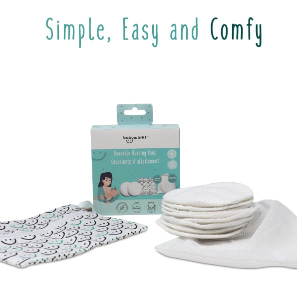 Baby Works Reusable Nursing Pads - Soft, Contoured Nursing Pads Made From Rayon - Comes with Wet Bag & Laundry Bag - Machine Washable - Pack of 8