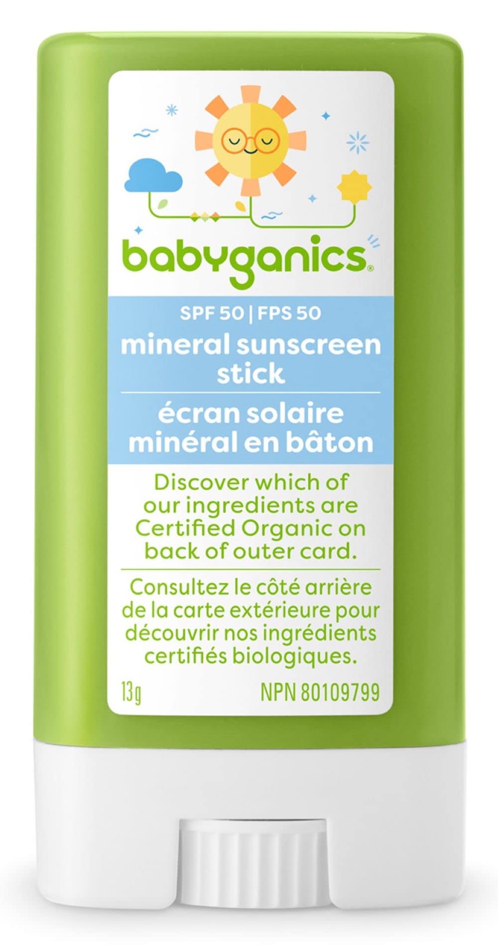 Babyganics Fragrance-Free Sunscreen Stick, SPF 50+ Sunblock with UVA/UVB Protection for Baby’s Skin, Organic, Water-Resistant, & Tear-Free Formula, 13g, Packaging May Vary