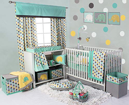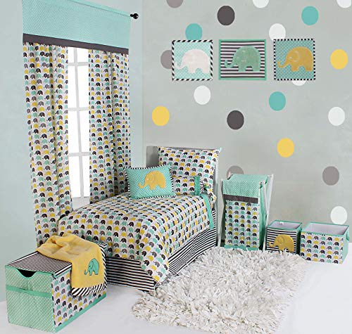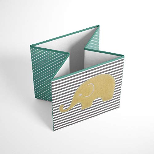 Bacati Elephants Unisex Fabric Storage Box/Tote, Mint/Yellow/Grey