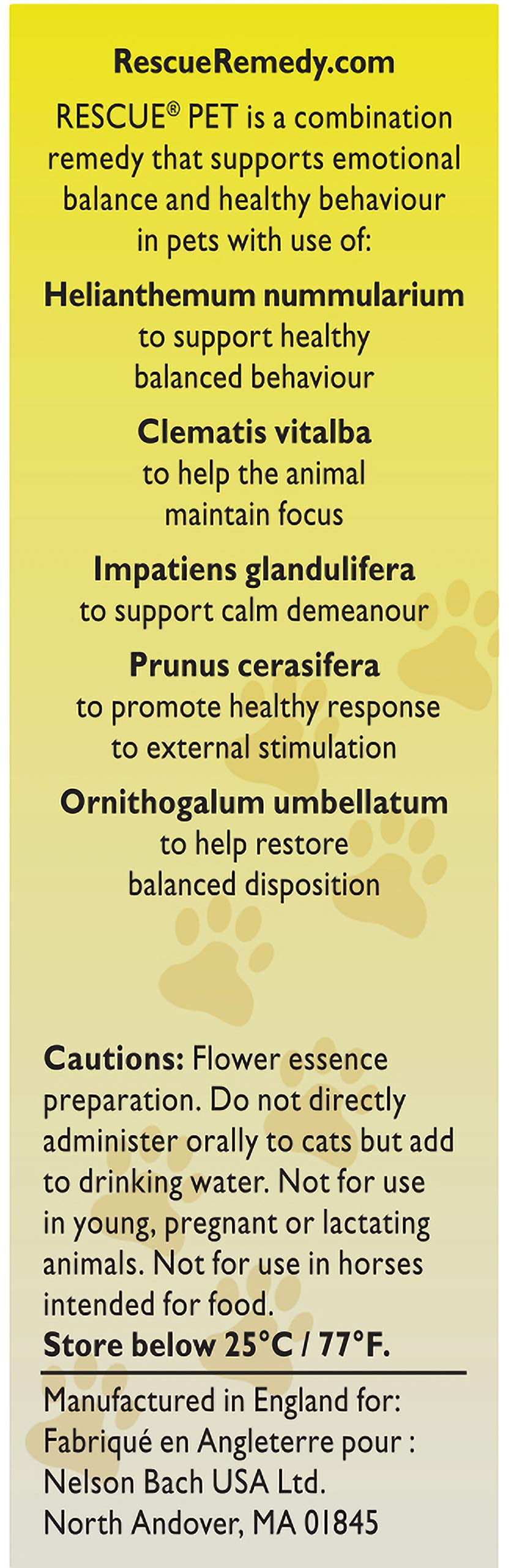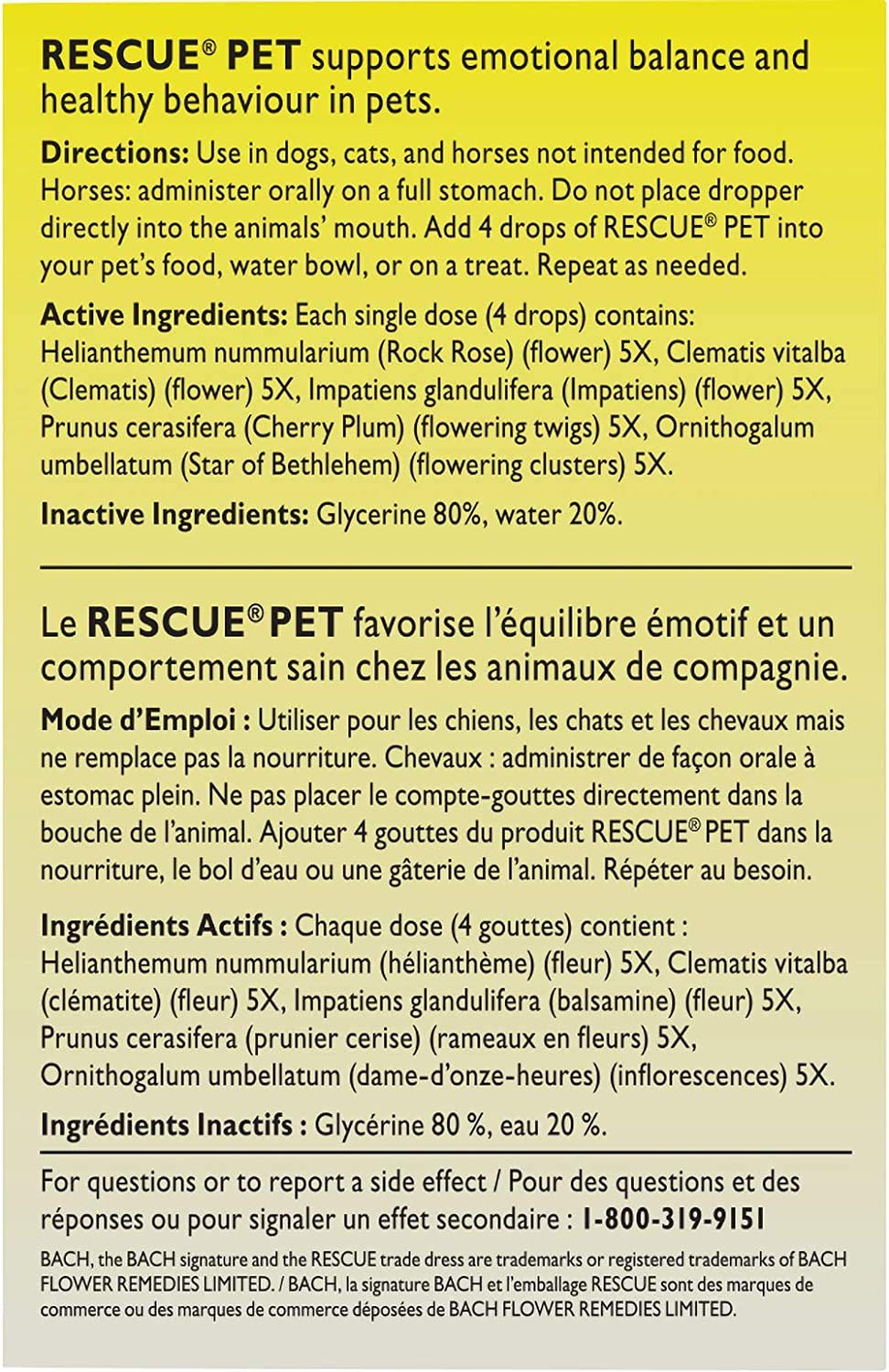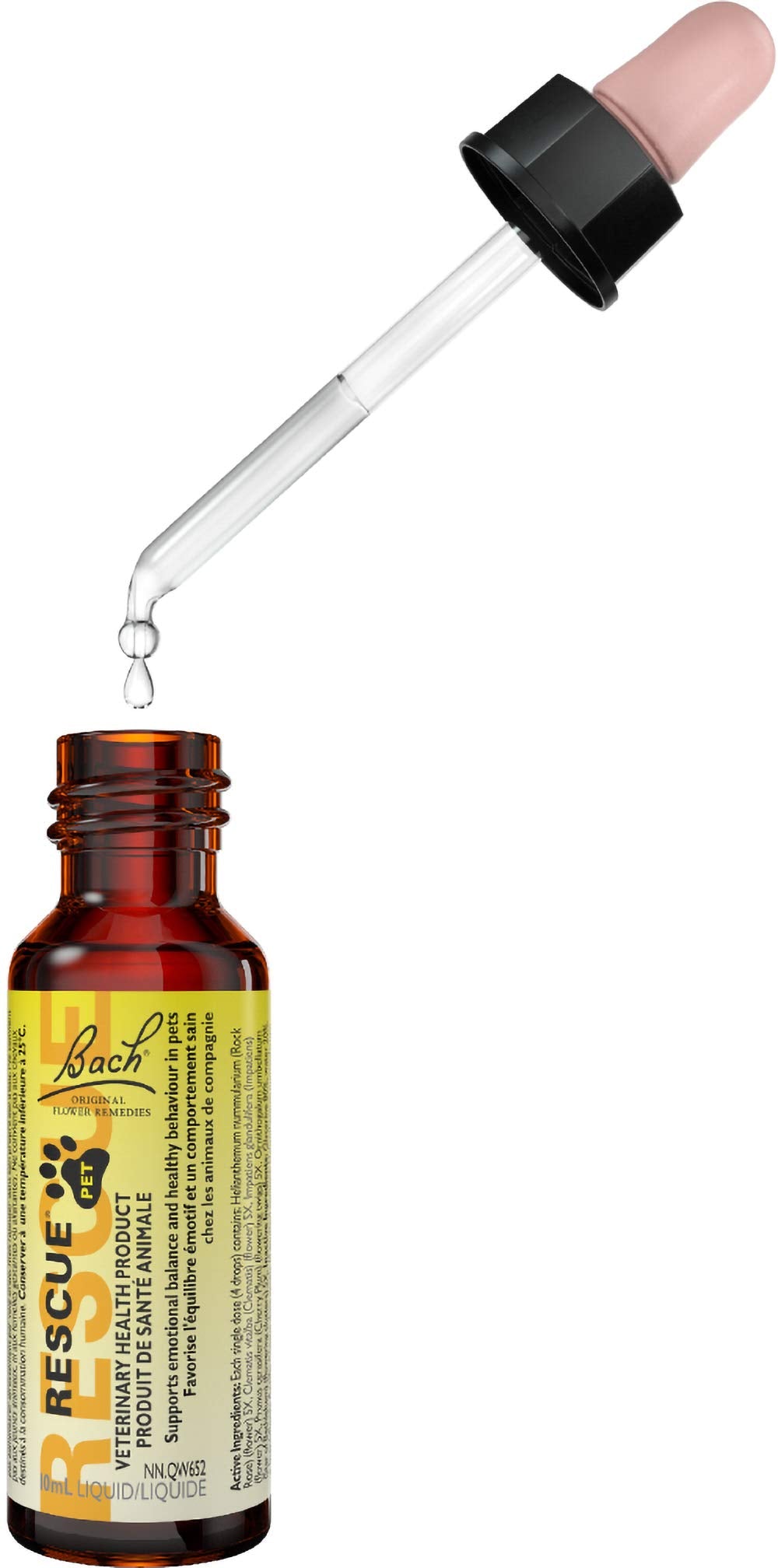Bach RESCUE PET Dropper 10mL, For Dogs, Cats, and Pet Horses, Natural Flower Essence, Thunder, Fireworks and Travel