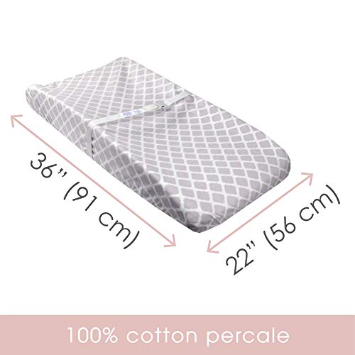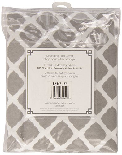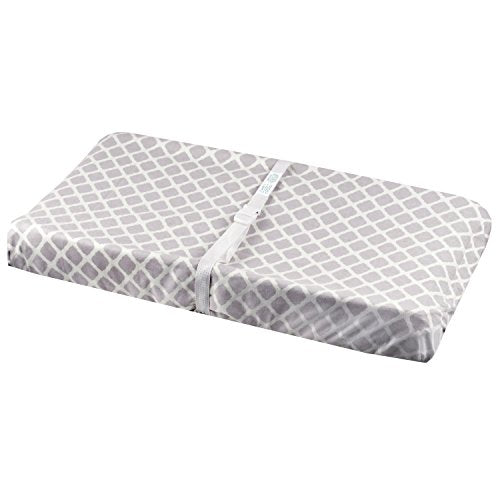 Ben & Noa Flannel Fitted Change Pad Sheet with Slits for Safety Straps, Grey Lattice