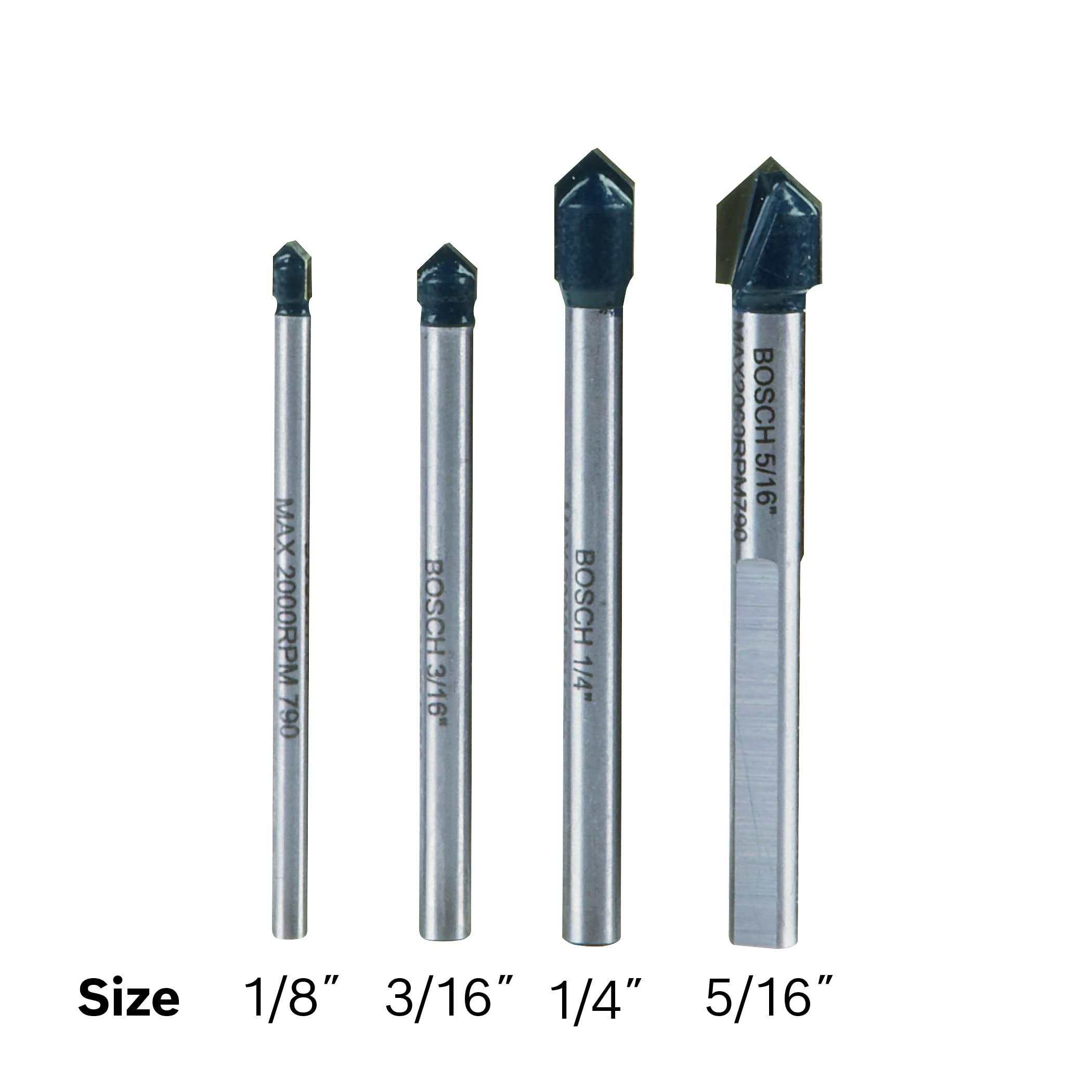 BOSCH GT2000 4-Piece Carbide Tipped Glass, Ceramic and Tile Drill Bit Set, Silver