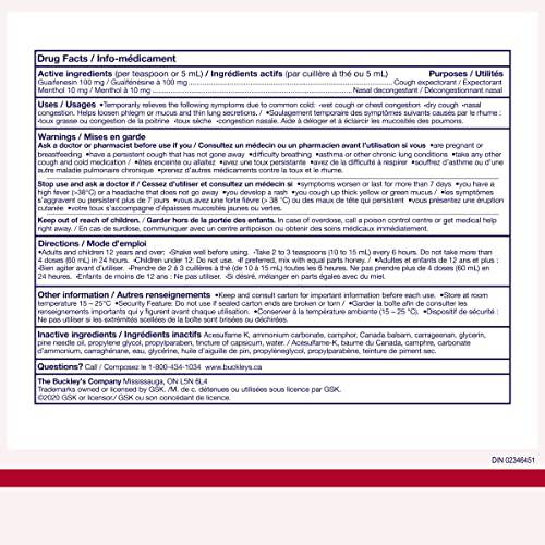 Buckley's Cough Syrup, Expectorant Mucus Relief, Wet Cough & Cold & Flu Medicine, Headache and Sinus Relief, 250 mL (Packaging May Vary)