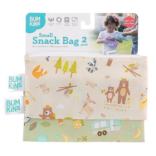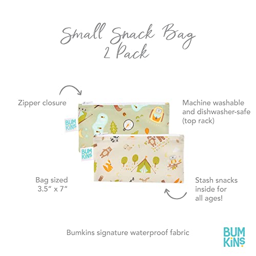 Bumkins Snack Bags, Reusable Fabric, Washable, Food Safe, BPA Free - Happy Campers (2-Pack)