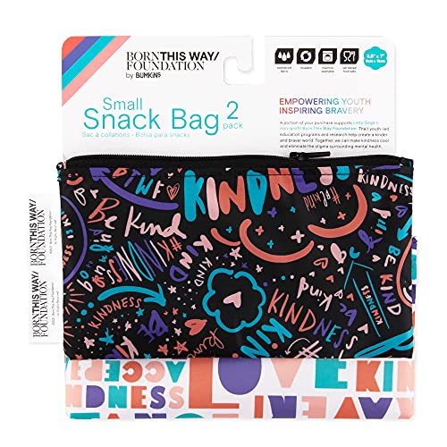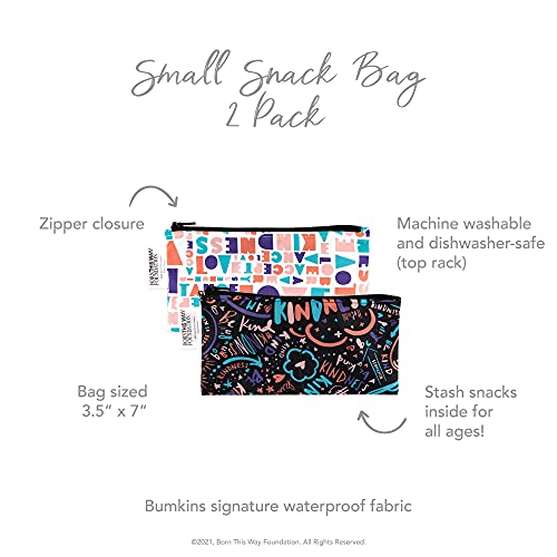 Bumkins Snack Bags, Reusable Fabric, Washable, Food Safe, BPA Free – Kindness (2-Pack)