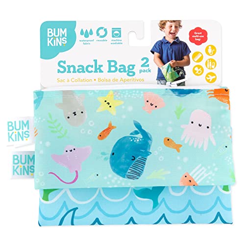 Bumkins Snack Bags, Reusable Fabric, Washable, Food Safe, BPA Free - Ocean Life (2-Pack)