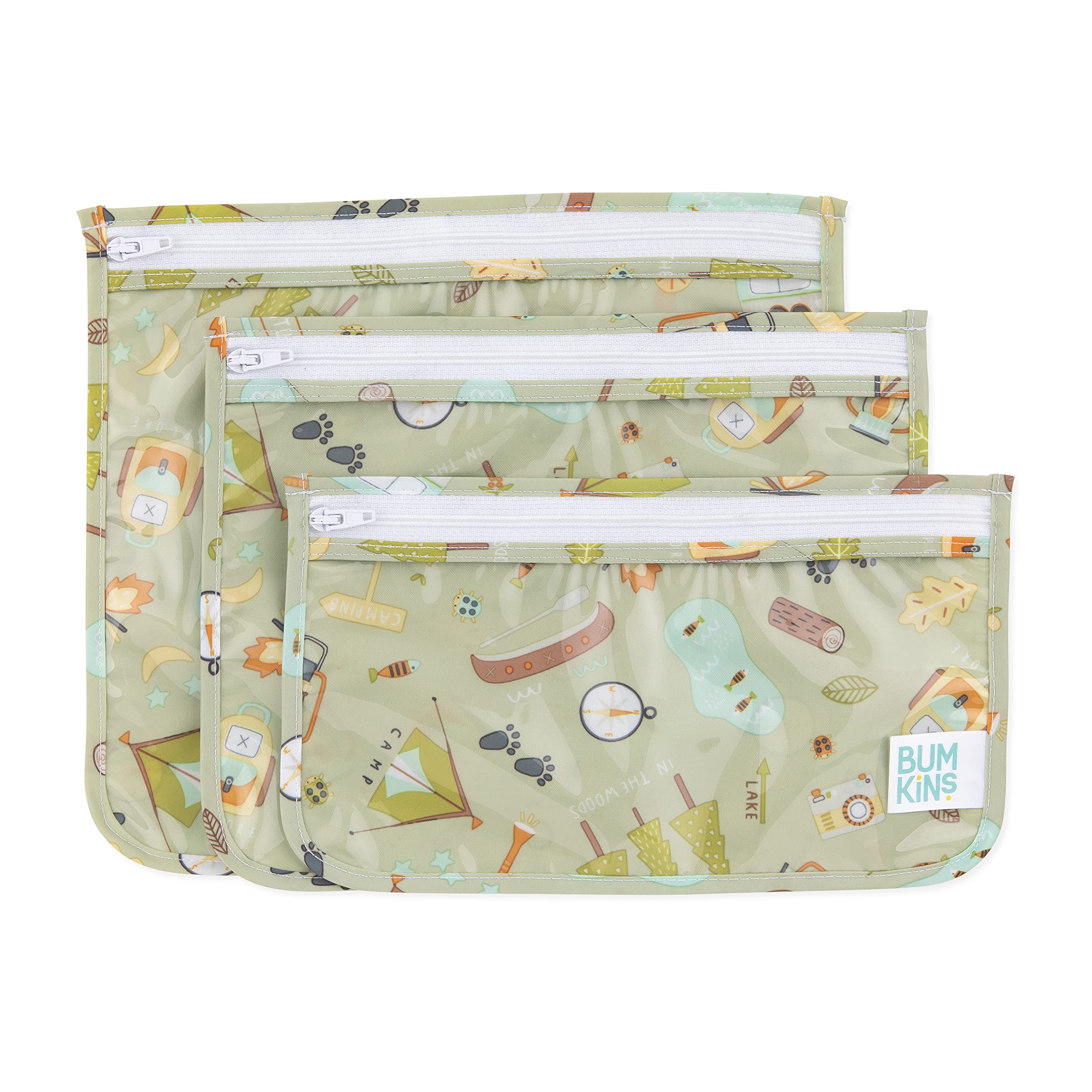 Bumkins Travel Bag, Toiletry, TSA Approved Pouch, Zip Bag, Quart Size Airline Compliant, Clear-Sided, Baby, Diaper Bag Organization, Makeup, Accessories, Packing, Set of 3 Sizes, Camp Gear Green