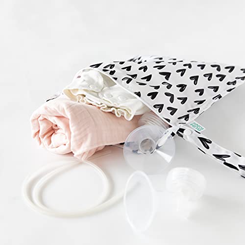 Bumkins Waterproof Wet Bag, Washable, Reusable for Travel and more, for Wet Swimsuits, Toiletries, 12x14 – Black Hearts