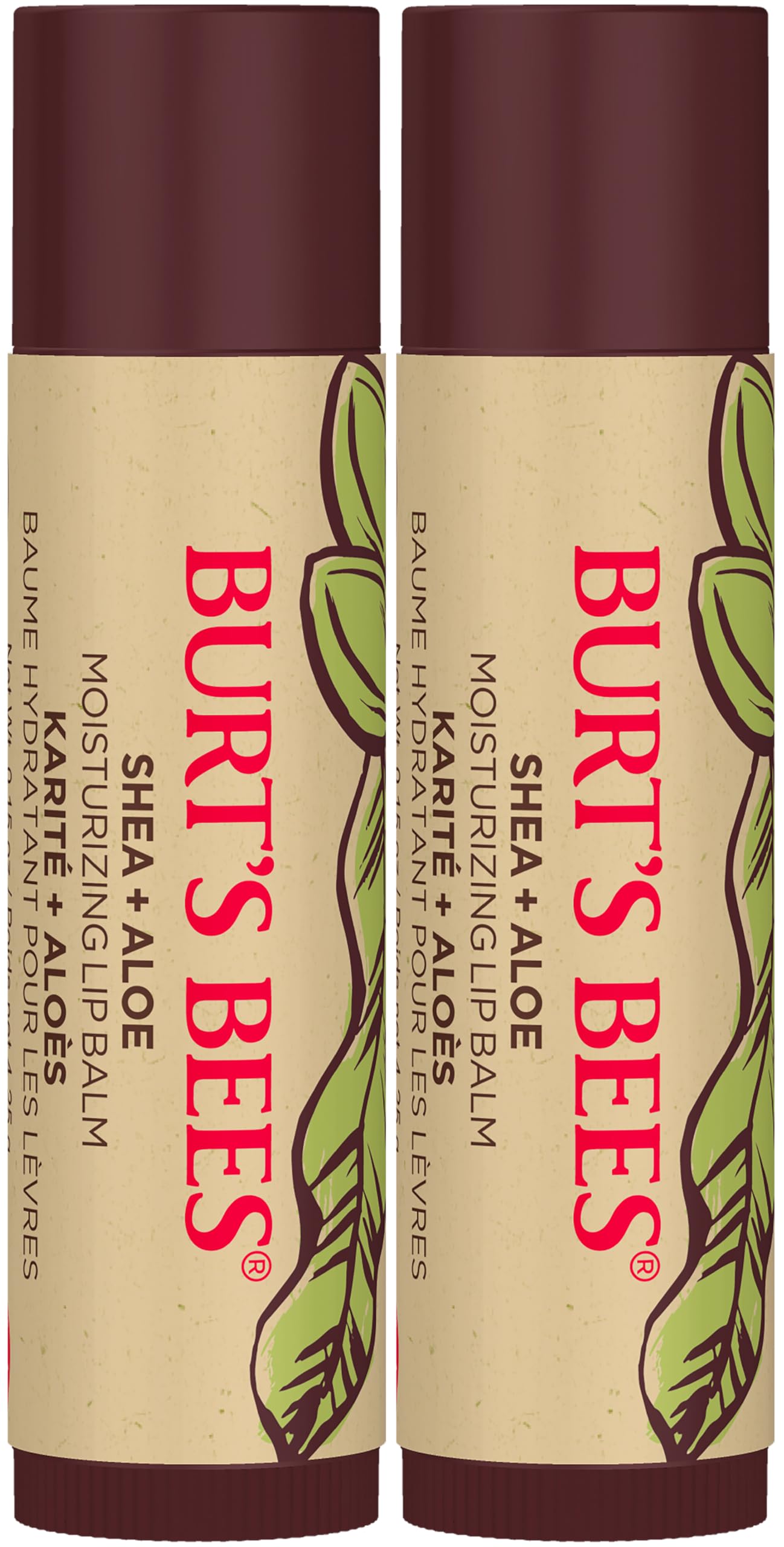 Burt's Bees 100% Natural Origin Moisturizing Lip Balm for Dry Chapped Lips, Conditionaing Lip Therapy - Pack of 2 - Shea & Aloe