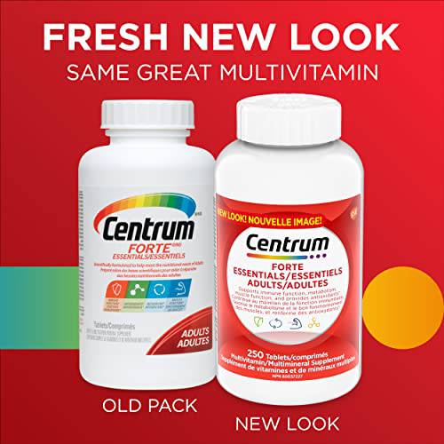 Centrum Adult Forte Essentials Mulitvitamins/Minerals Supplement for Men & Women, 250 Tablets (Packaging May Vary)