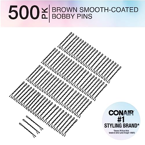 Conair Bobby Pins In Tub, Brown, 500 Pack