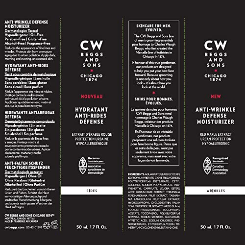 CW Beggs Anti-Wrinkle Defense Moisturizer for Men, Anti-Aging Face Cream, Hypoallergenic, Fragrance-Free, Paraben-Free, Alcohol-Free, Mineral Oil-Free, Cruelty-Free, 50 mL