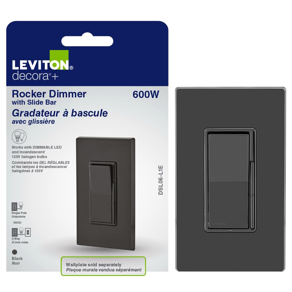Leviton Decora Dimmer with Slide Bar and Rocker Switch, 15 Amp, DSL06-L1E, Black