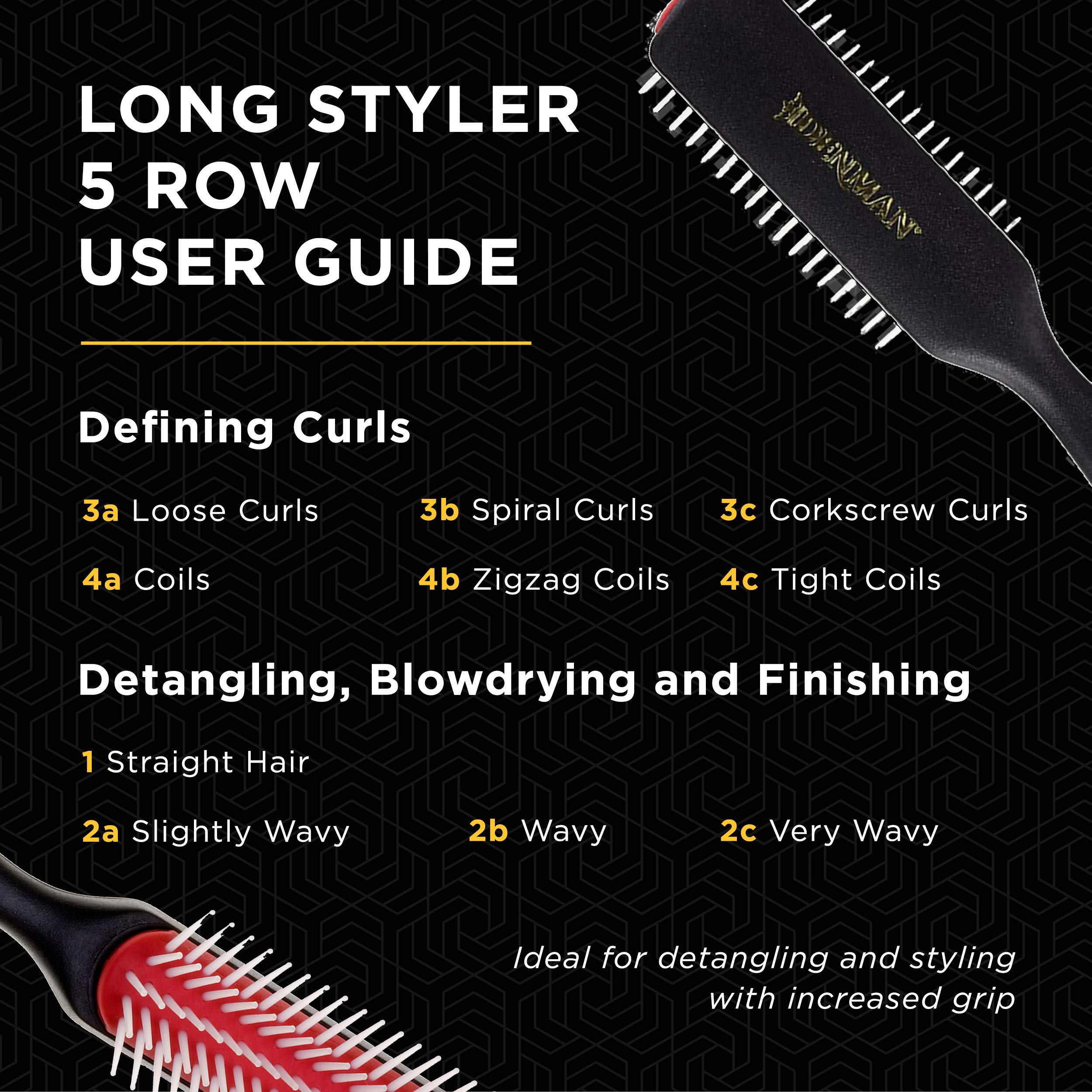 Denman Curly Hair Brush D143-5 Row Styling Mini Brush With Long Handle for Detangling, Separating, Shaping and Defining Curls and Smoothing Hair- For Women and Men