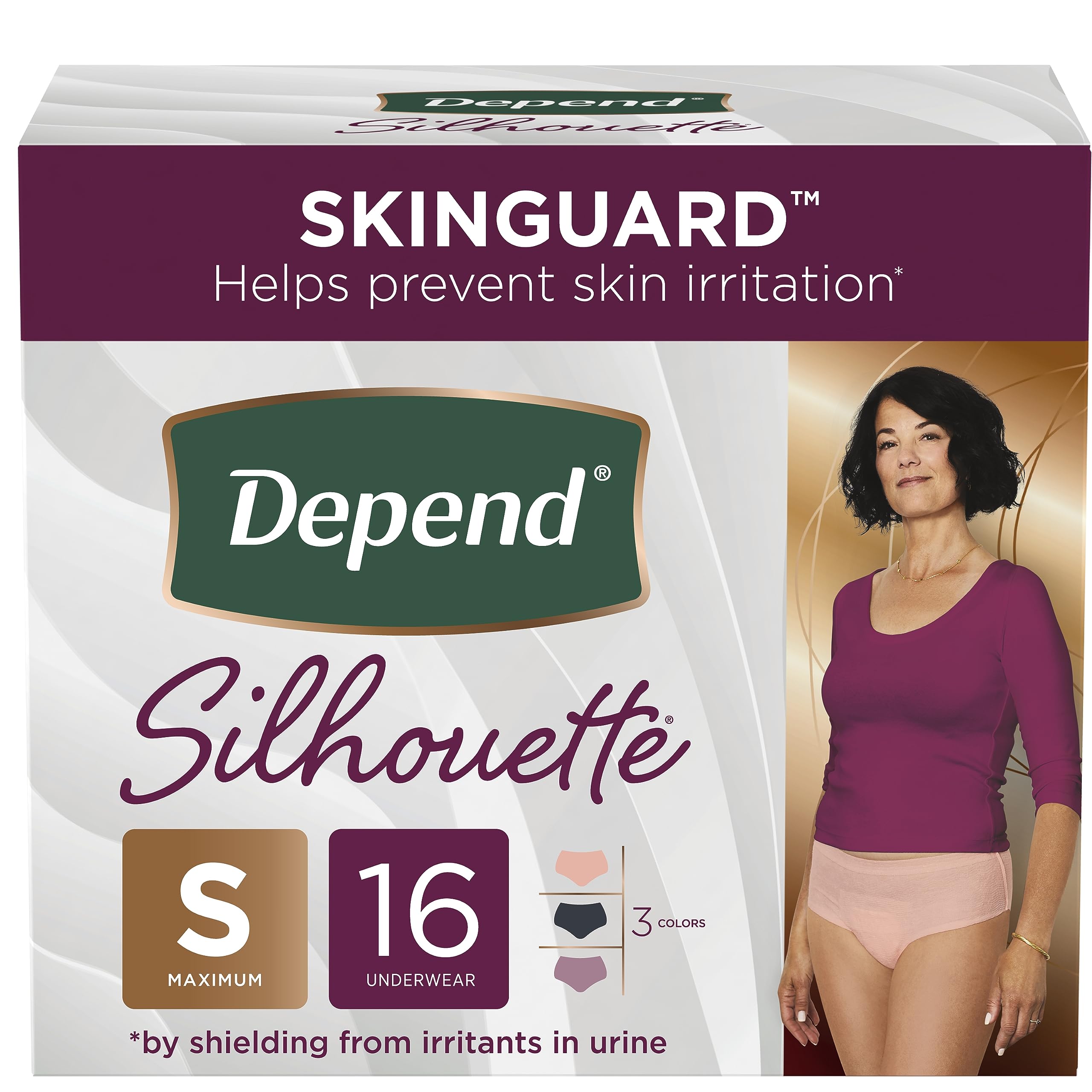 Depend Silhouette Adult Incontinence Underwear for Women, Maximum Absorbency, Small, Pink & Black, 16 Count