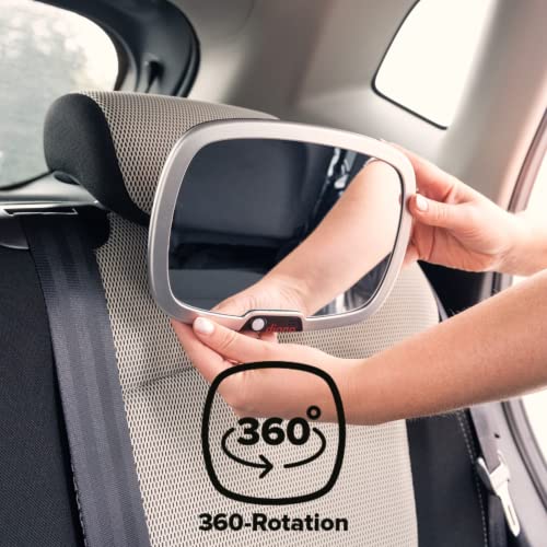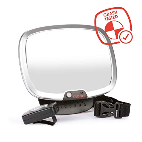 Diono Easy View Plus Baby Car Mirror with Light, Safety Car Seat Mirror for Rear Facing Infant with 360 Rotation, LED Night Light, Wide Crystal Clear View, Shatterproof, Crash Tested