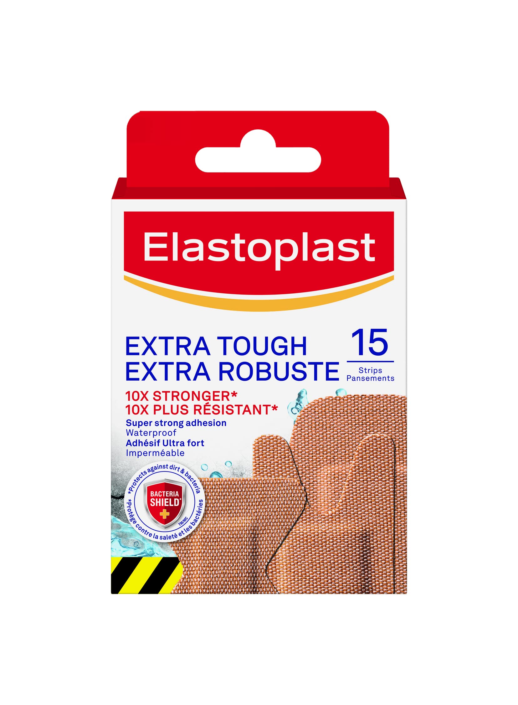 Elastoplast Extra Tough Waterproof Adhesive Bandages, 15 Strips, Beige | Flexible Fabric | Durable Protection Super Strong Adhesion for Extra Strong Sticking Power