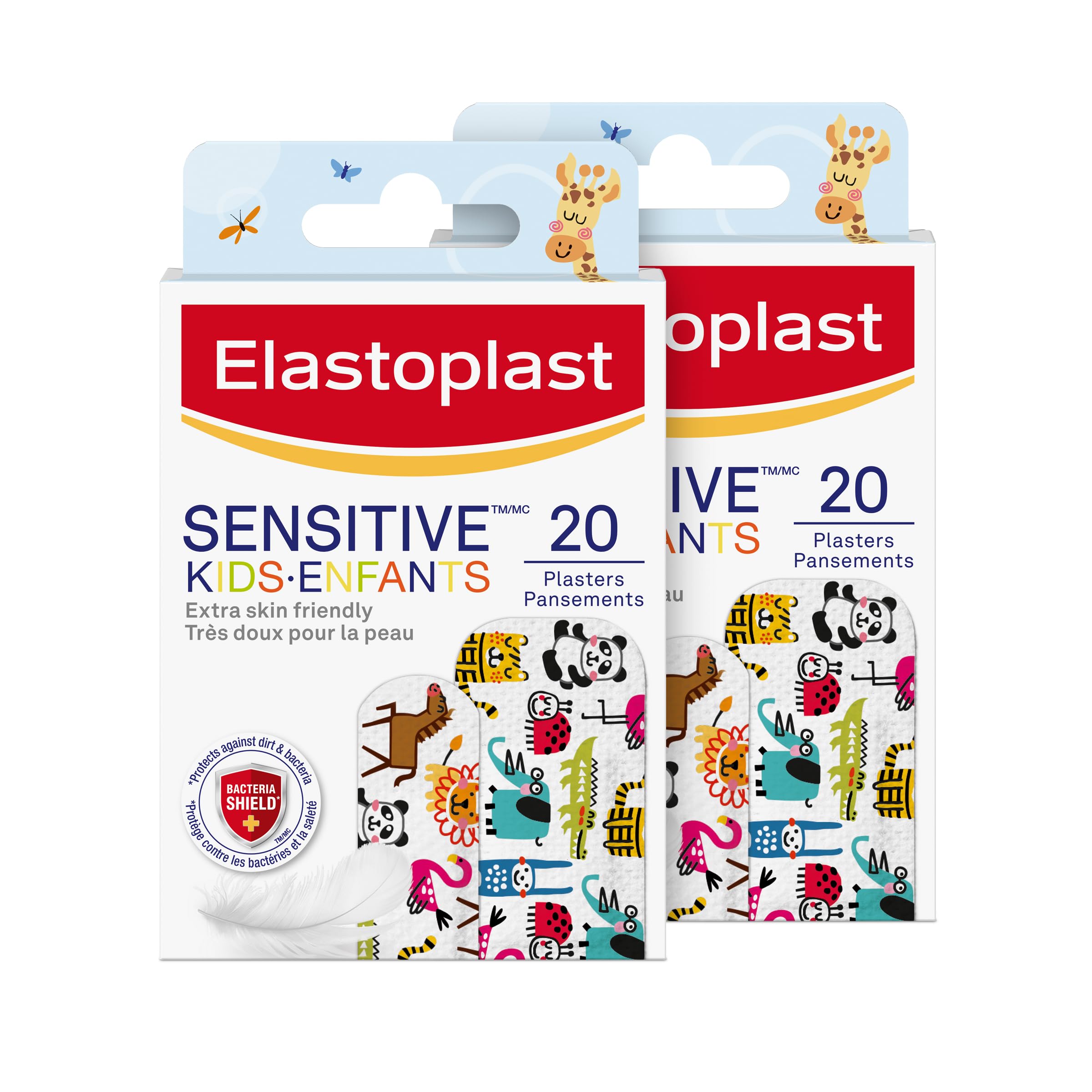 Elastoplast Sensitive Kids Bandages | 20 Strips, 2 sizes - Pack of 2 | Hypoallergenic | Extra skin-friendly | Soft & Breathable Material | Painless to Remove | Latex Free