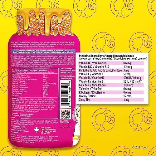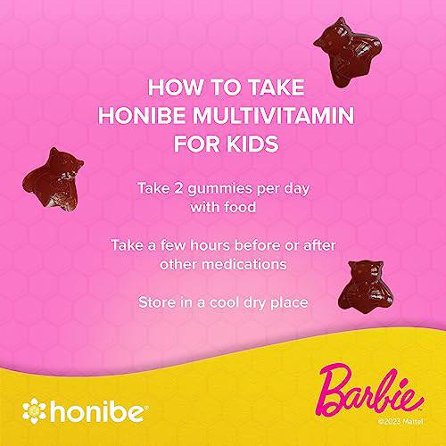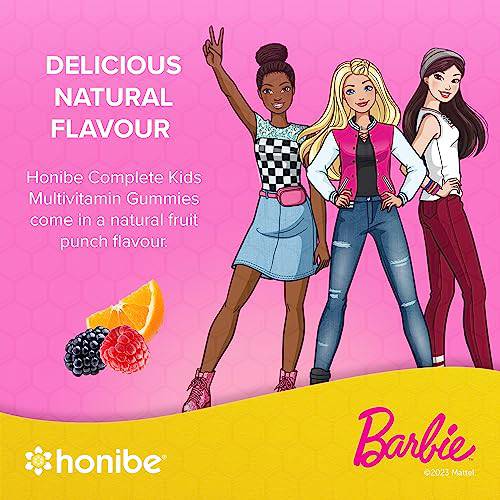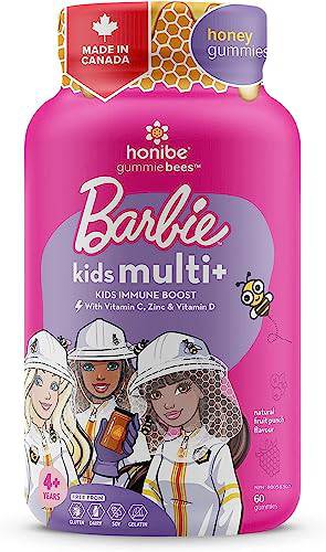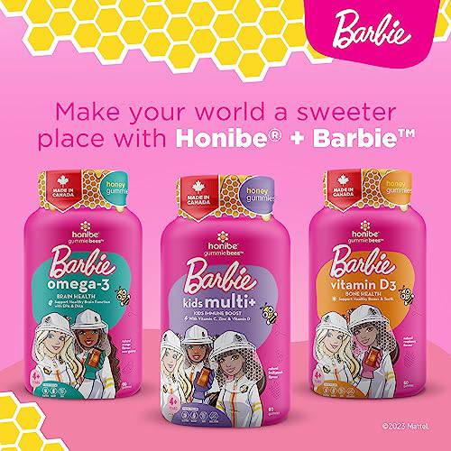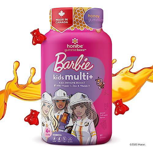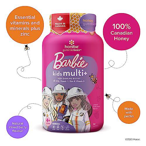 Honibe Kids Multivitamin Gummies Plus Immune Boost | Barbie | Honey-Based Vitamins Made in Canada | Children's Chewable Gummy Vitamins | Kids Zinc Vitamin Gummy Bees | 60 gummies