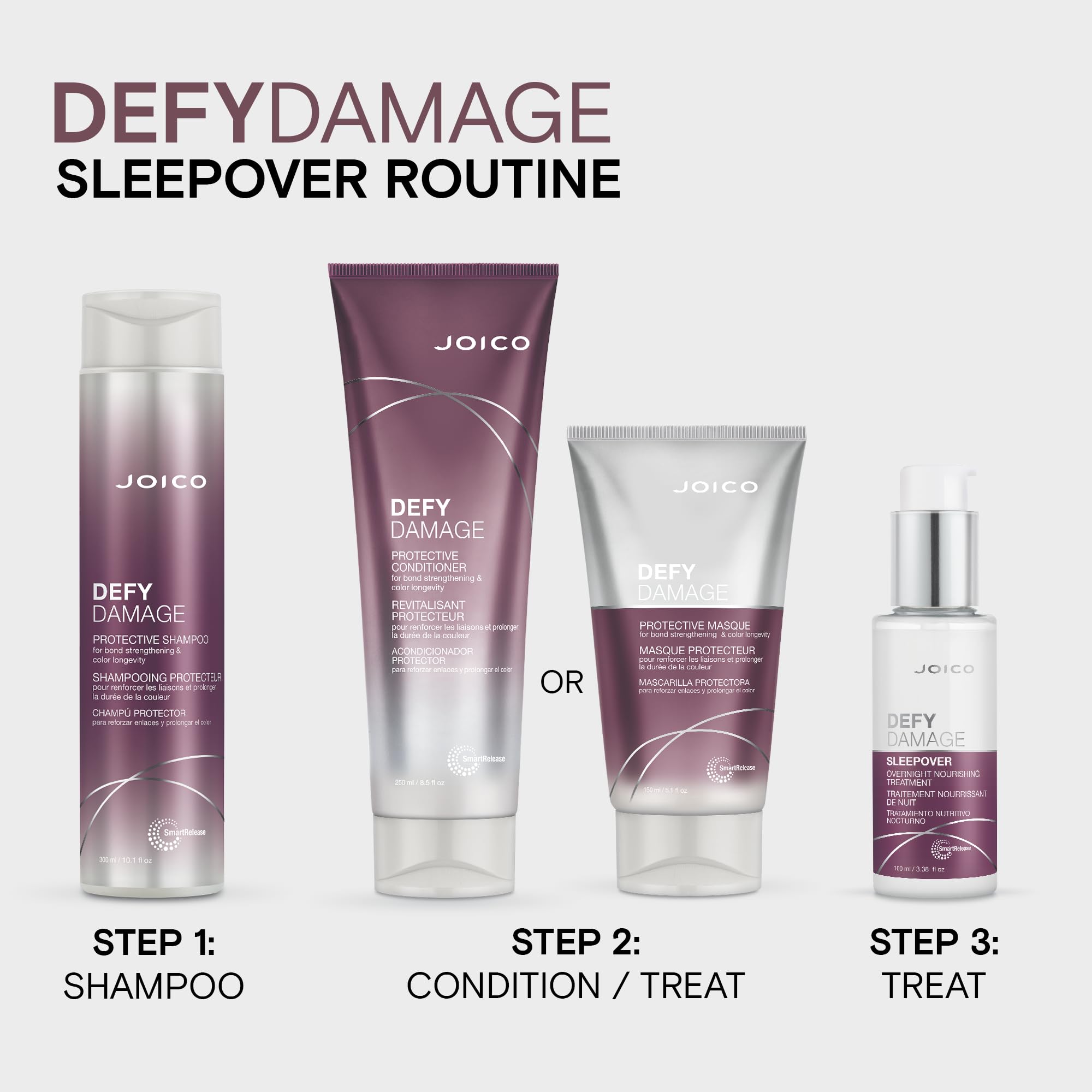 Joico Defy Damage Overnight Nourishing Sleepover Treatment, Hair Repair for Dry Damaged Hair, Mask for Curly or Colored Hair, 100mL