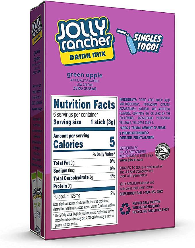 Jolly Rancher Singles-To-Go Sugar Free Green Apple Drink Mix, 6-ct (Pack of 6)