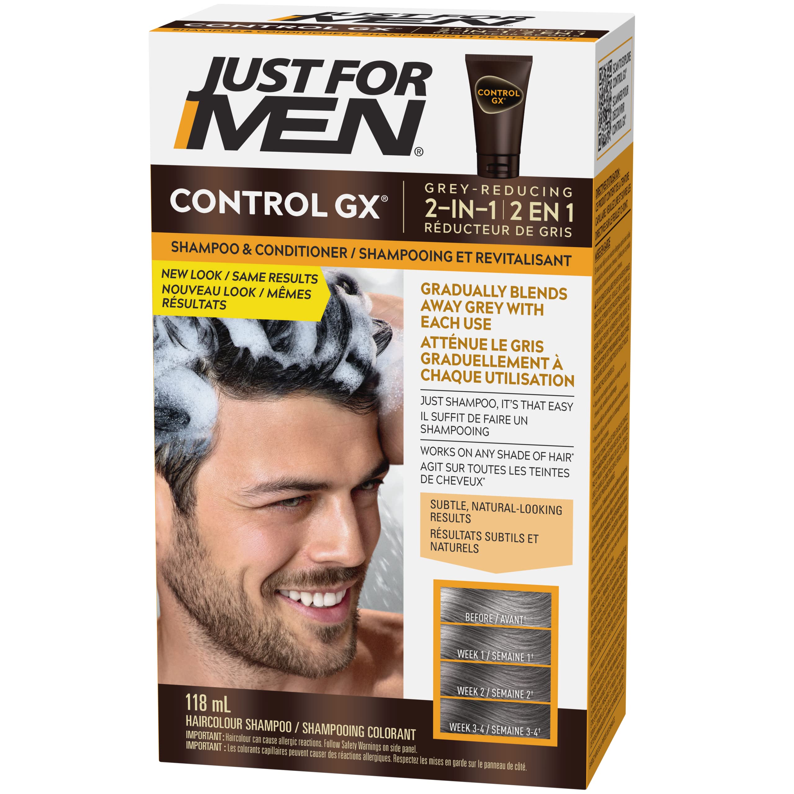 Just For Men Control GX Grey Reducing 2-in-1 Shampoo and Conditioner, Gradual Hair Color for Men, Stronger and Healthier Hair, 118ml - Pack of 1, Packaging May Vary