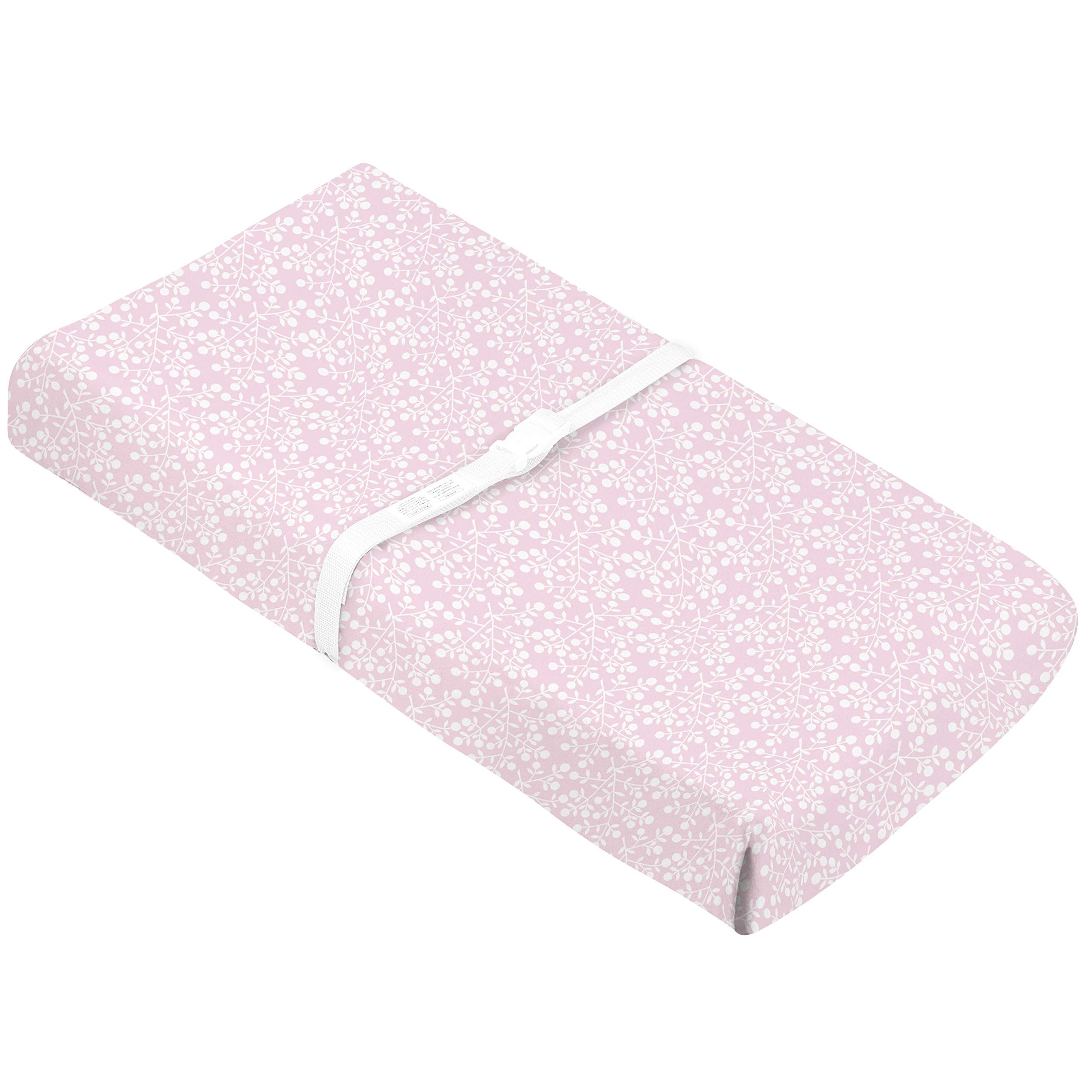 Kushies Baby 100% Breathable Cotton Flannel Contoured Changing Pad Cover with Slits for Safety Straps, 17" x 33" Pink Berries