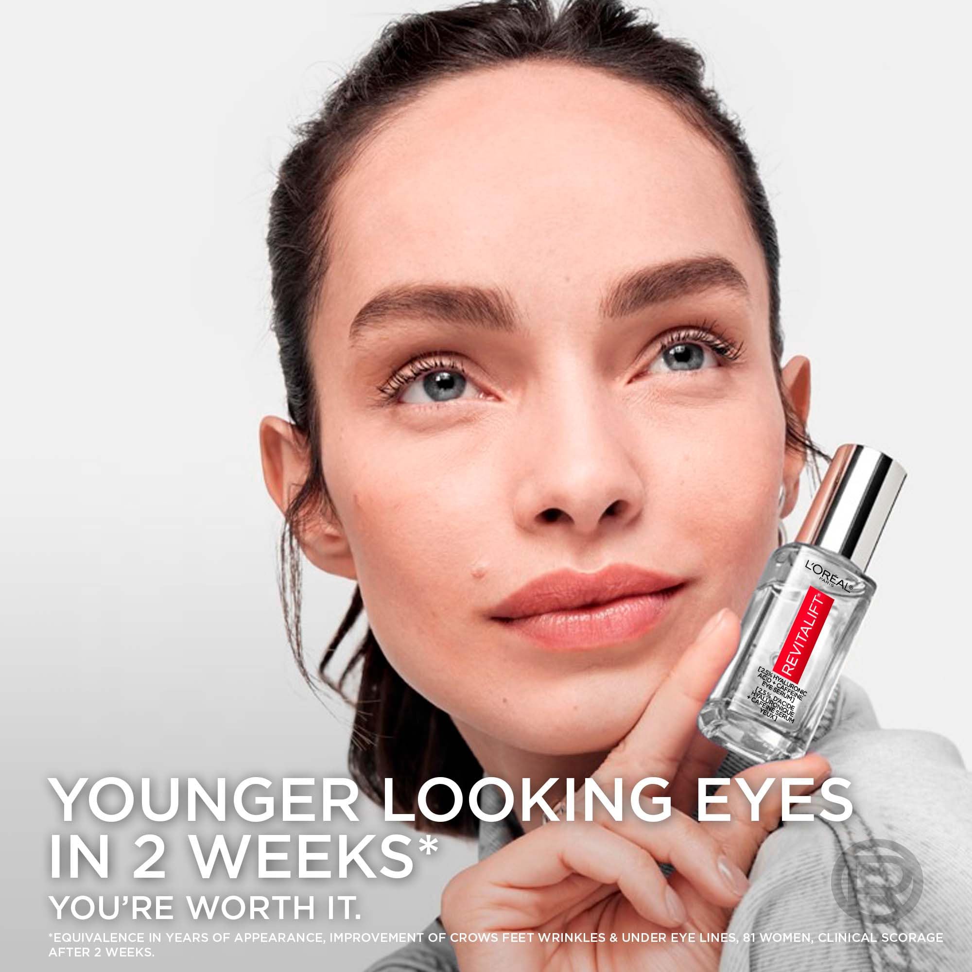 L’Oréal Paris 2.5% Hyaluronic Acid & Caffeine Plumping Eye Serum, Brightens Look of Dark Circles, Reduces Look of Crow's Feet & Wrinkles, Revitalift, For All Skin Tones & Types, Fragrance Free, 20ml
