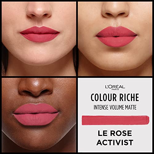 L’Oréal Paris Colour Riche Intense Volume Matte Lipstick - Up to 16H Wear, infused with HYALURONIC ACID - Le Rose Activist, 1.8 g