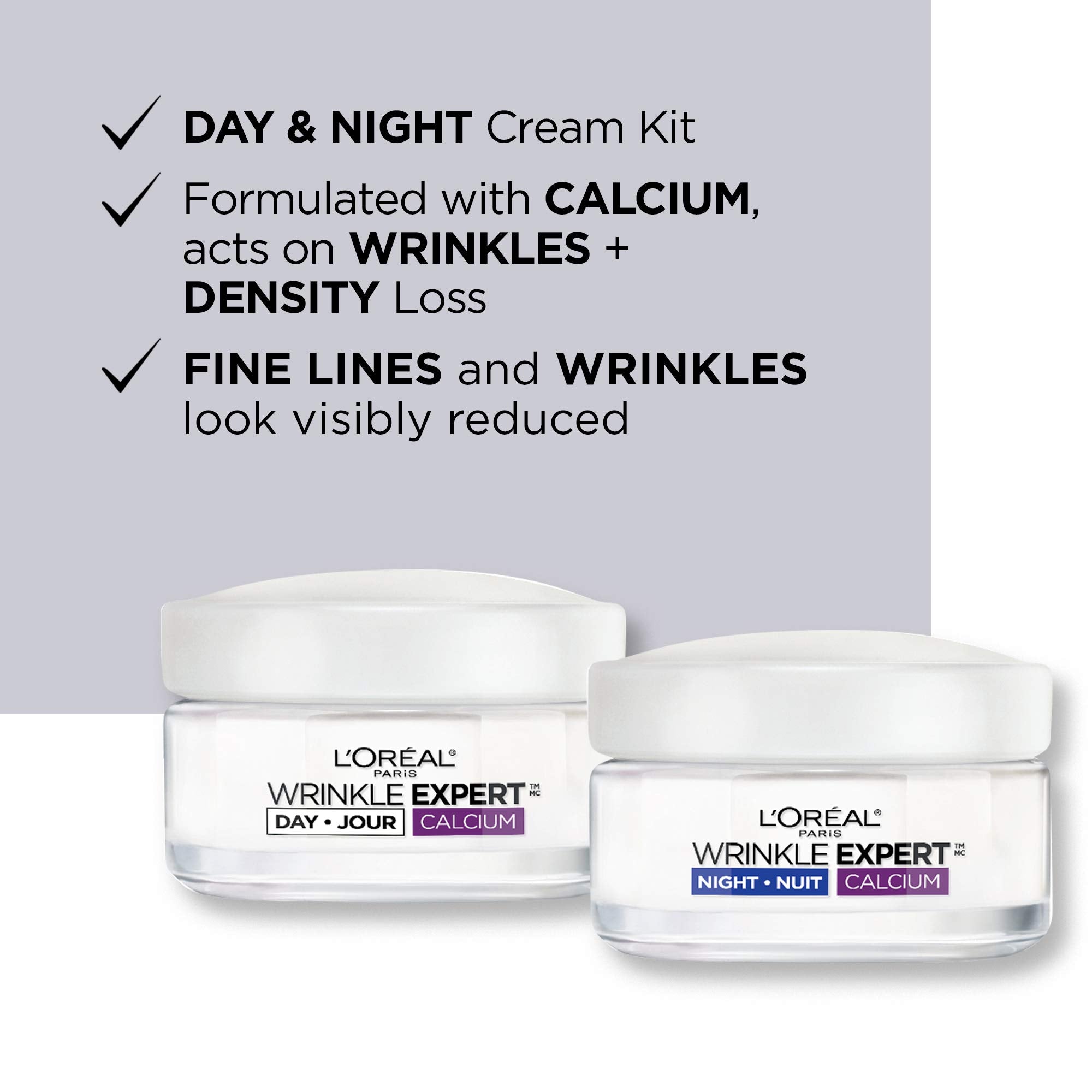 L'Oreal Paris Anti-Aging Face Cream 55+, Day + Night Skincare Kit, Wrinkle Expert, With Calcium to Reduce the Look of Wrinkles, 50mL