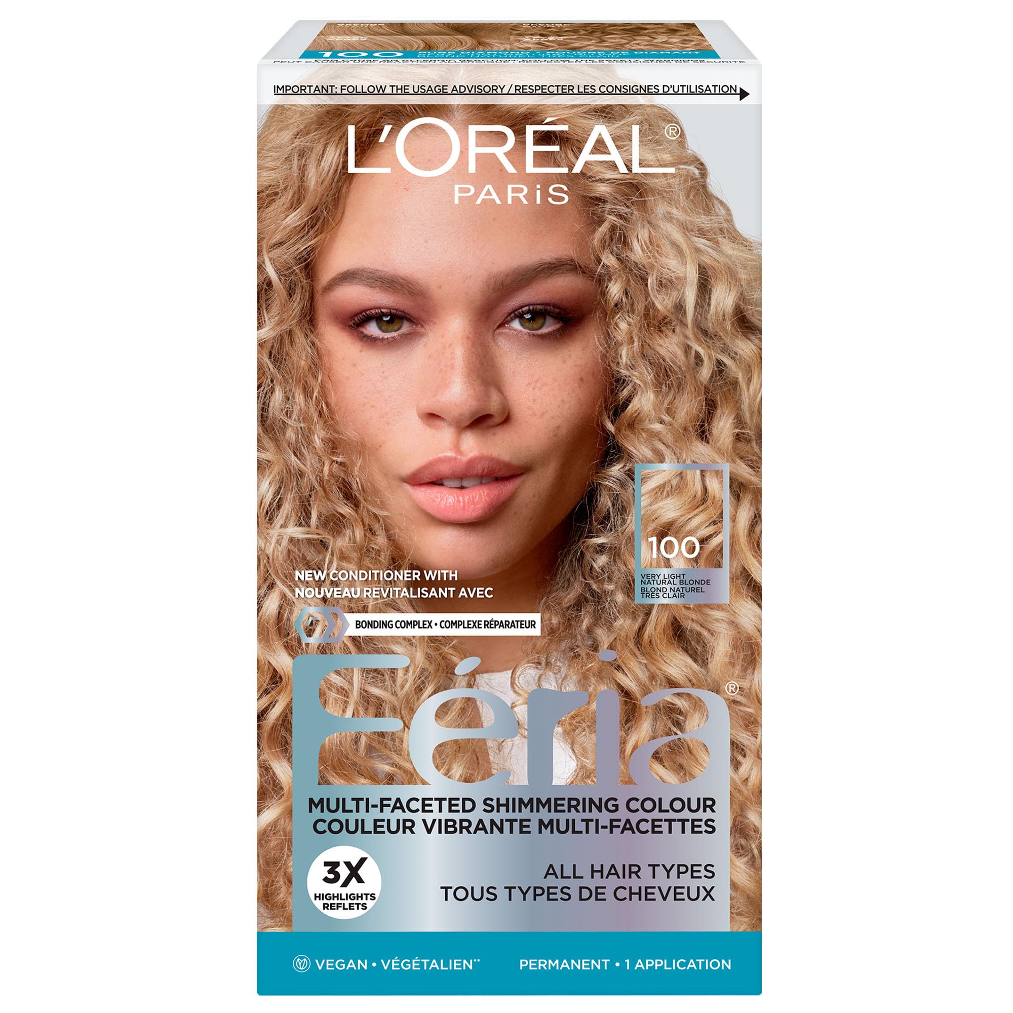 L’Oréal Paris Feria Multi-Faceted Shimmering Permanent Hair Dye, 100 Very Light Natural Blonde, Permanent Hair Color for Long Lasting Hair Dye with Bonding Complex Conditioner, Pack of 1