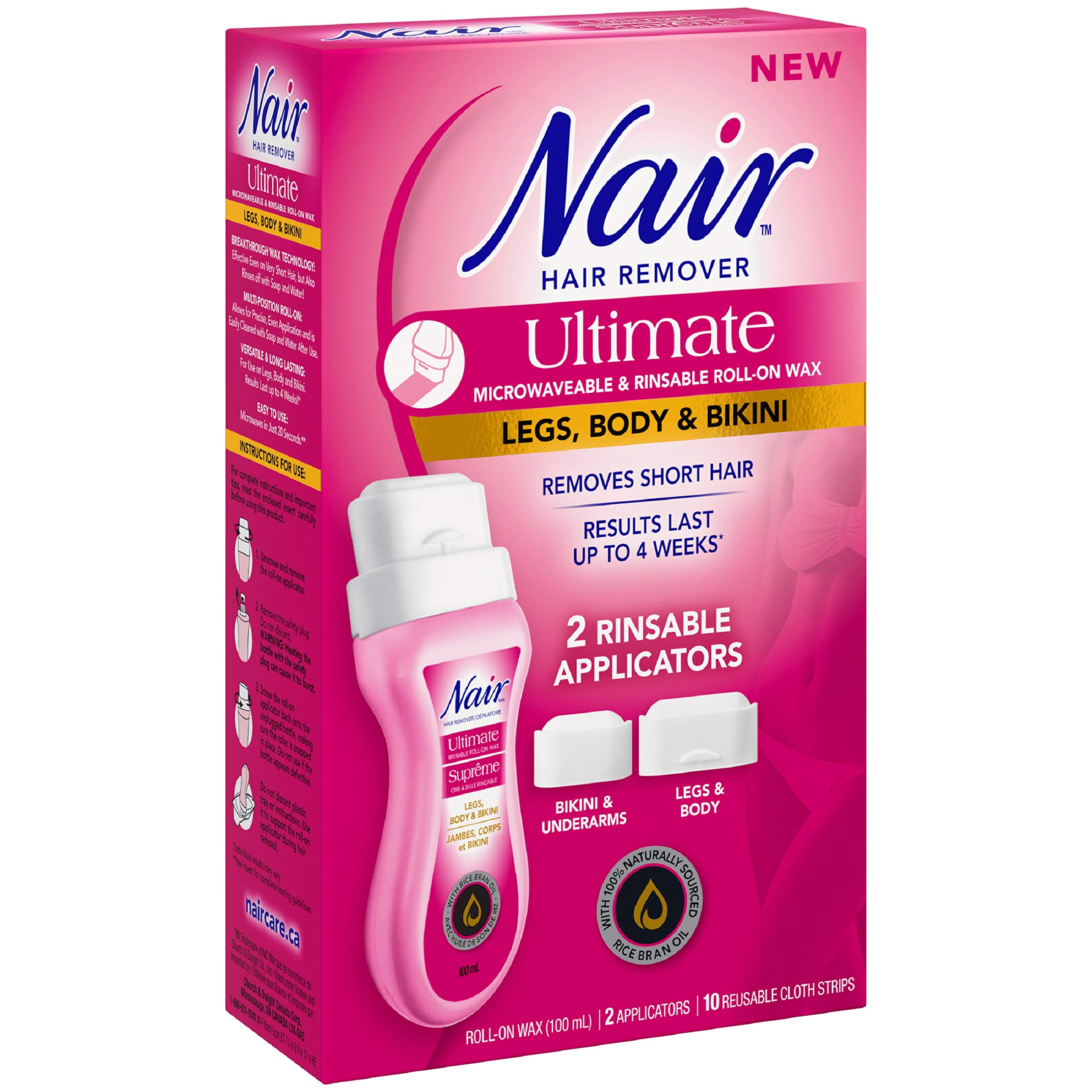 Nair Ultimate Roll-On Wax, Microwavable and Rinsable, For Legs, Body and Bikini, made with Rice Bran Oil, 100ml + 2 Applicators