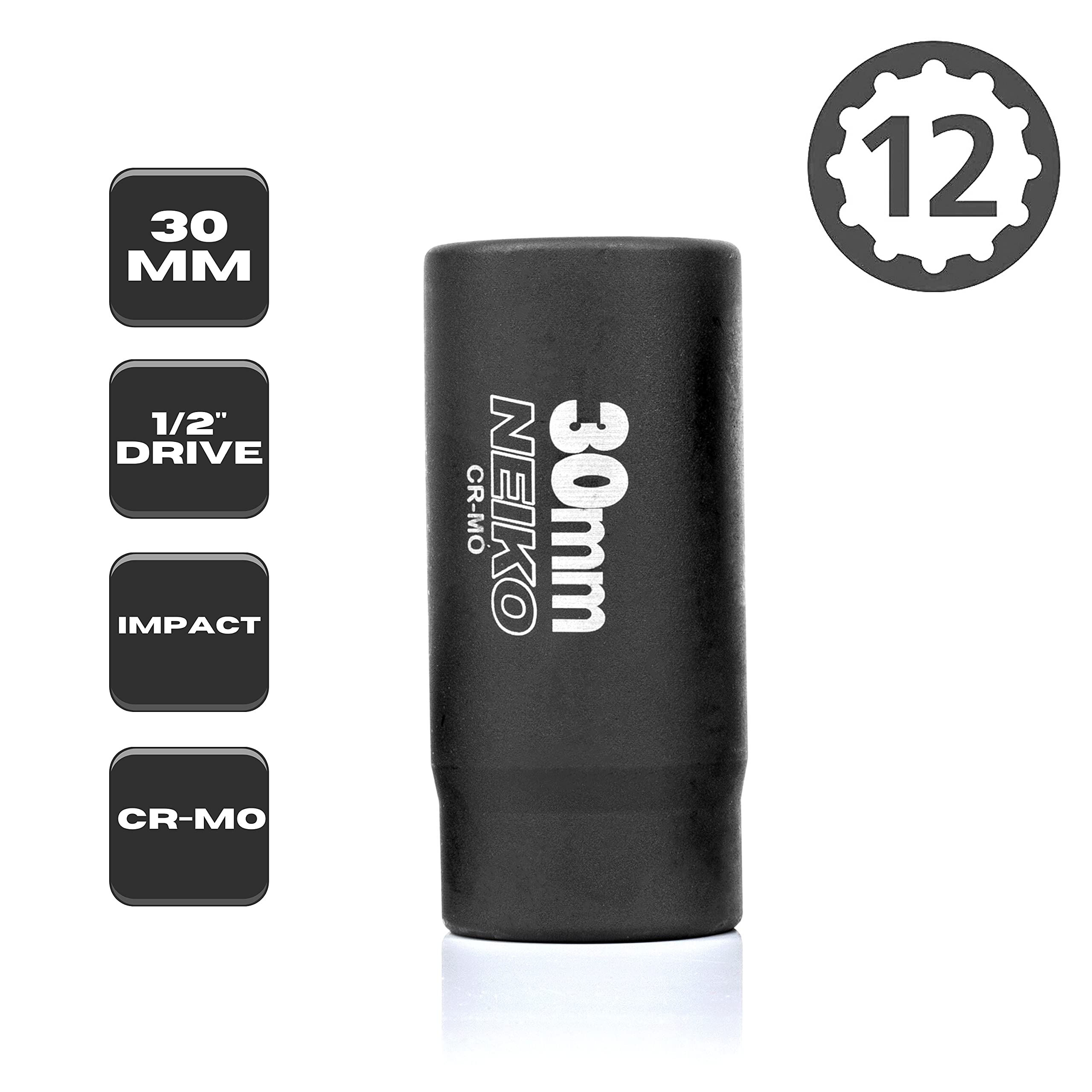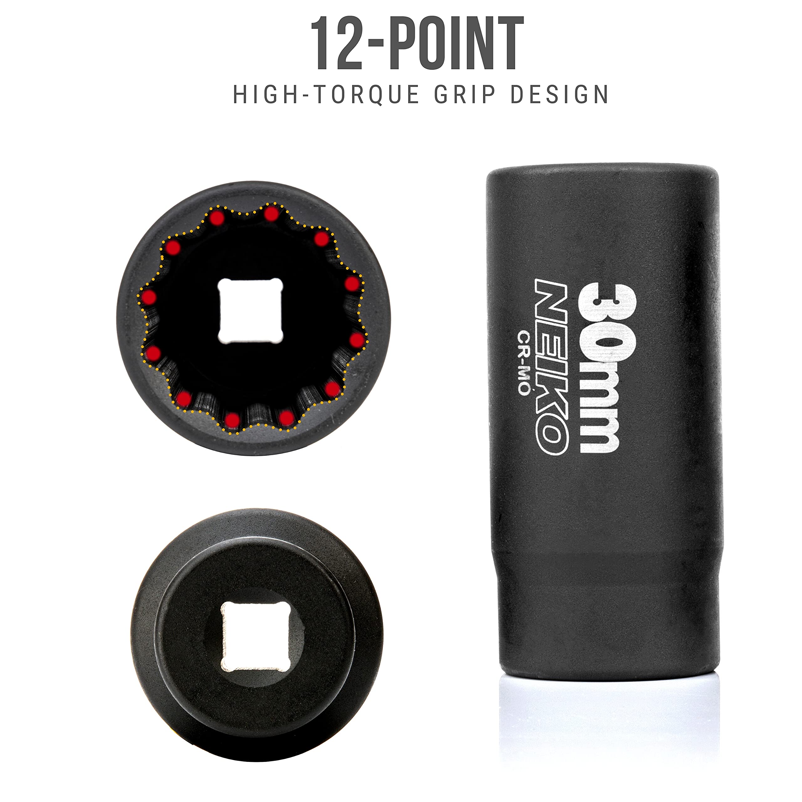 NEIKO 02522A 30mm Socket | 1/2” Drive Deep Impact Socket | Spindle & Axle Nut Socket | 12 Point |Chrome Molybdenum Cr-Mo |Deep Well Hub | Triple Square | Axle Shaft Nut Remover