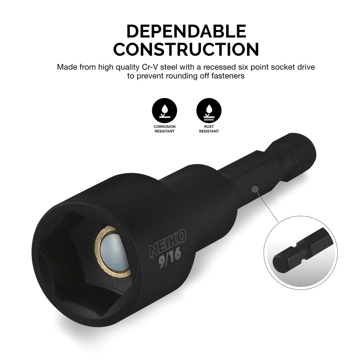 NEIKO 10190A Magnetic Nut Driver Set, 6 Piece Impact Nut Driver Set, SAE, 1/4” to 9/16”, 2-9/16” Long Nut Driver Bit Set for Impact Drill, Cr-V