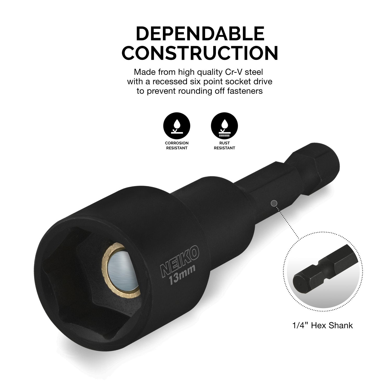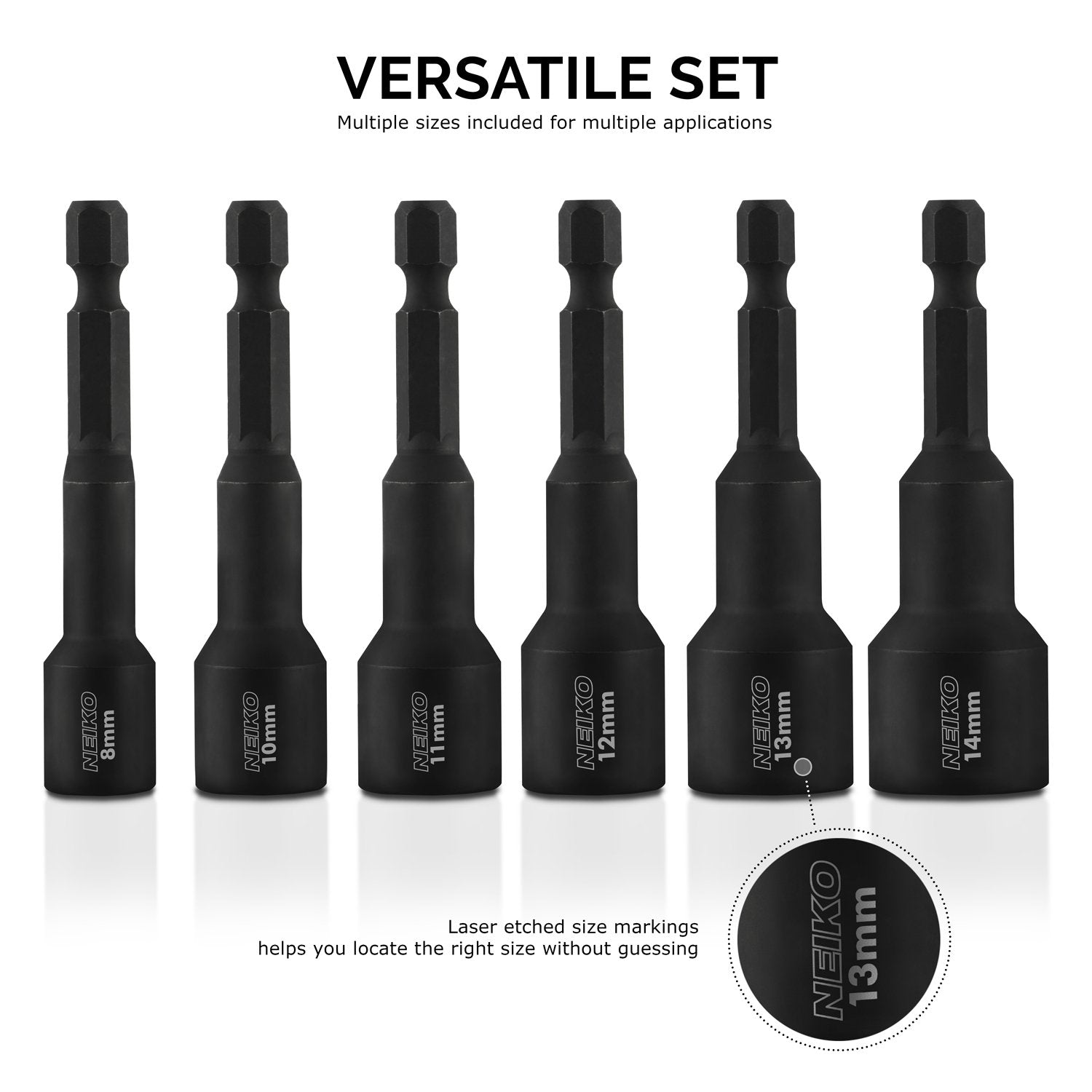 Neiko 10191A Impact Ready Magnetic Nut Driver | 6 Piece | MM | 8 to 14 mm | 2-9/16” Length | Cr-V, Metric,Master Kit
