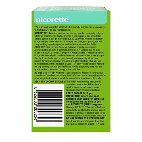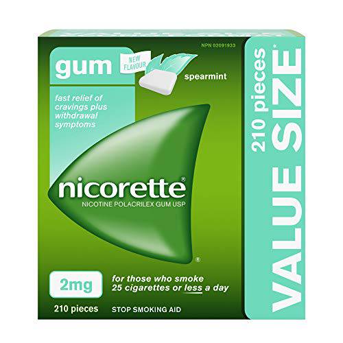 Nicorette Gum, Nicotine 2 Mg, Spearmint Flavour, Quit Smoking Aid And Smoking Cessation Aid, 210 Count