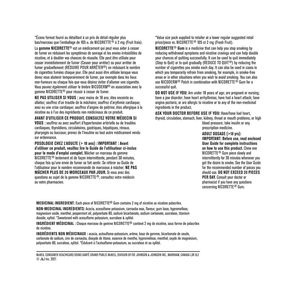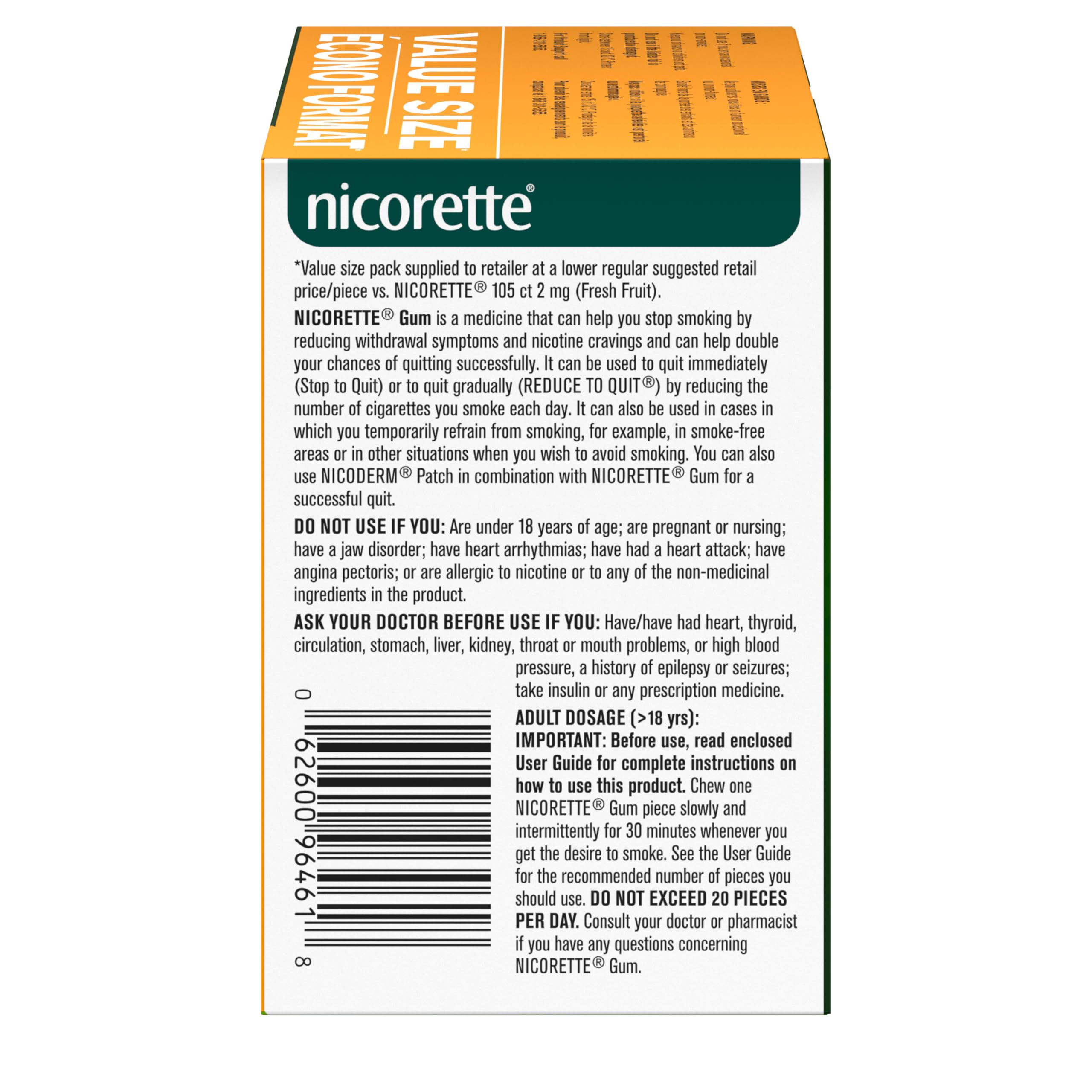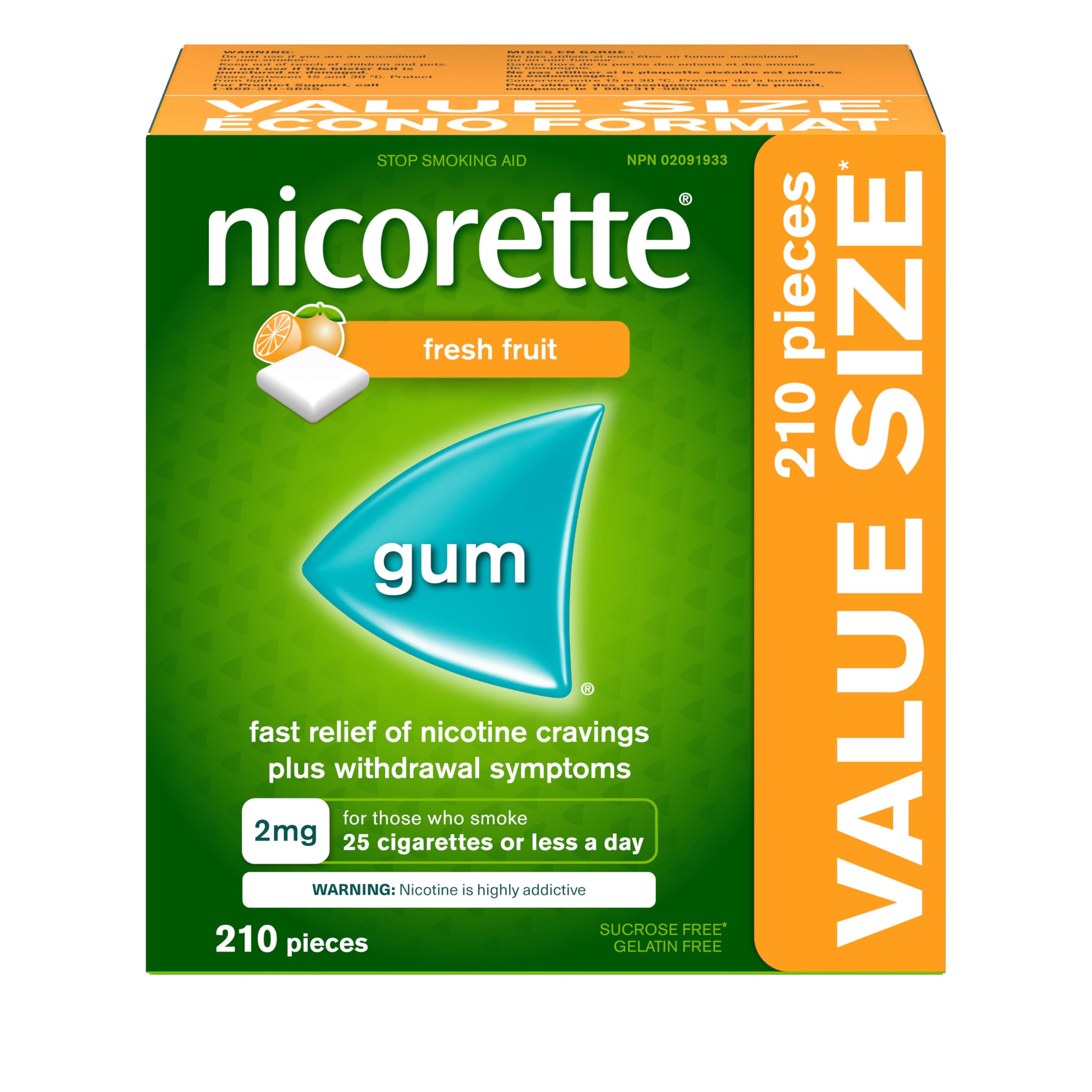 Nicorette Quit Smoking Aid, Nicotine Gum smoking cessation aid, Fresh Fruit, 2mg, 210 Pieces Value Size