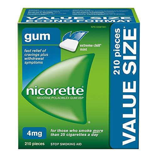 Nicorette Quit Smoking, Nicotine Gum, Extreme Chill Mint, 4mg, Value Size 210 count