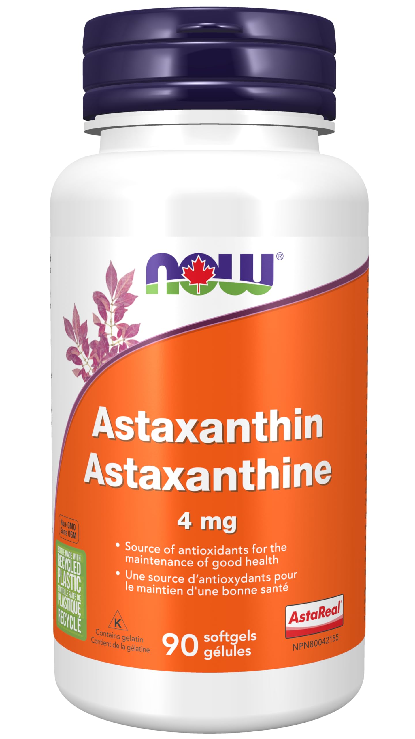NOW Supplements, Astaxanthin 4 mg derived from Non-GMO Haematococcus Pluvialis Microalgae and has naturally occurring Lutein, Canthaxanthin and Beta-Carotene, 90 Softgels