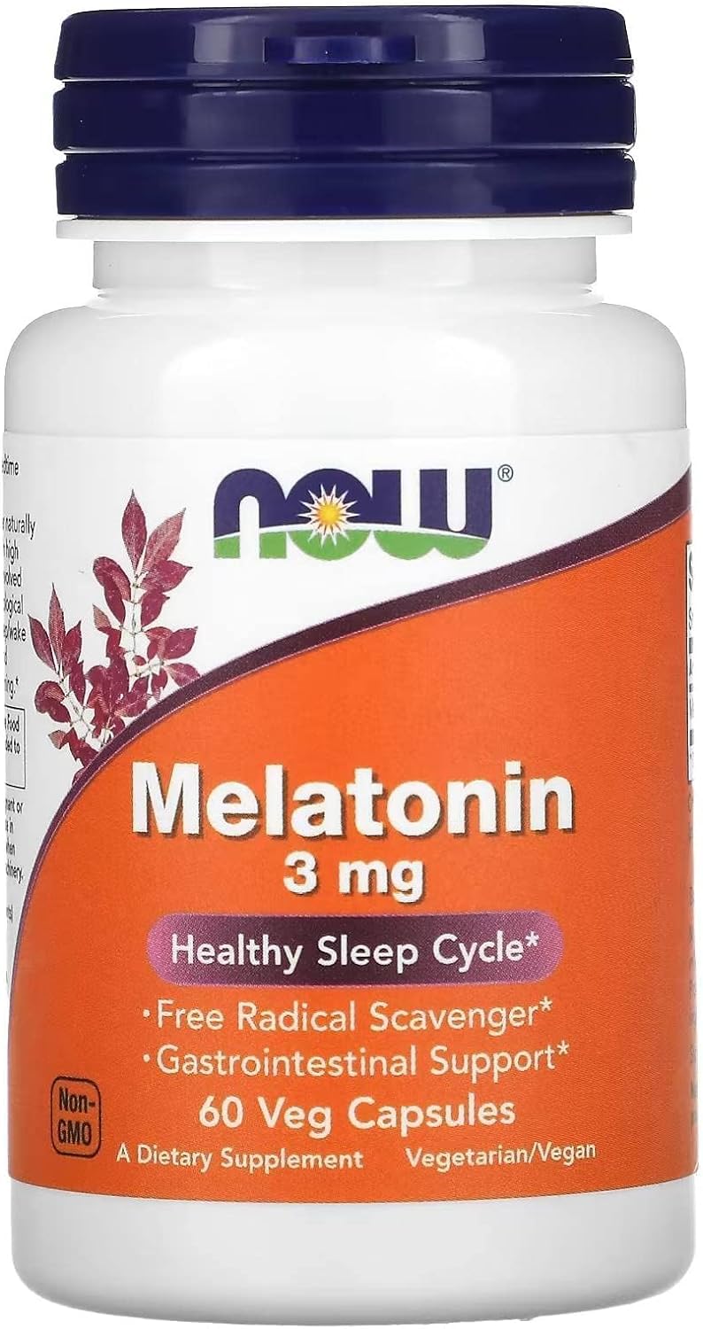 NOW Supplements, Melatonin 3 mg, Free Radical Scavenger, Healthy Sleep Cycle, 60 Veg Capsules