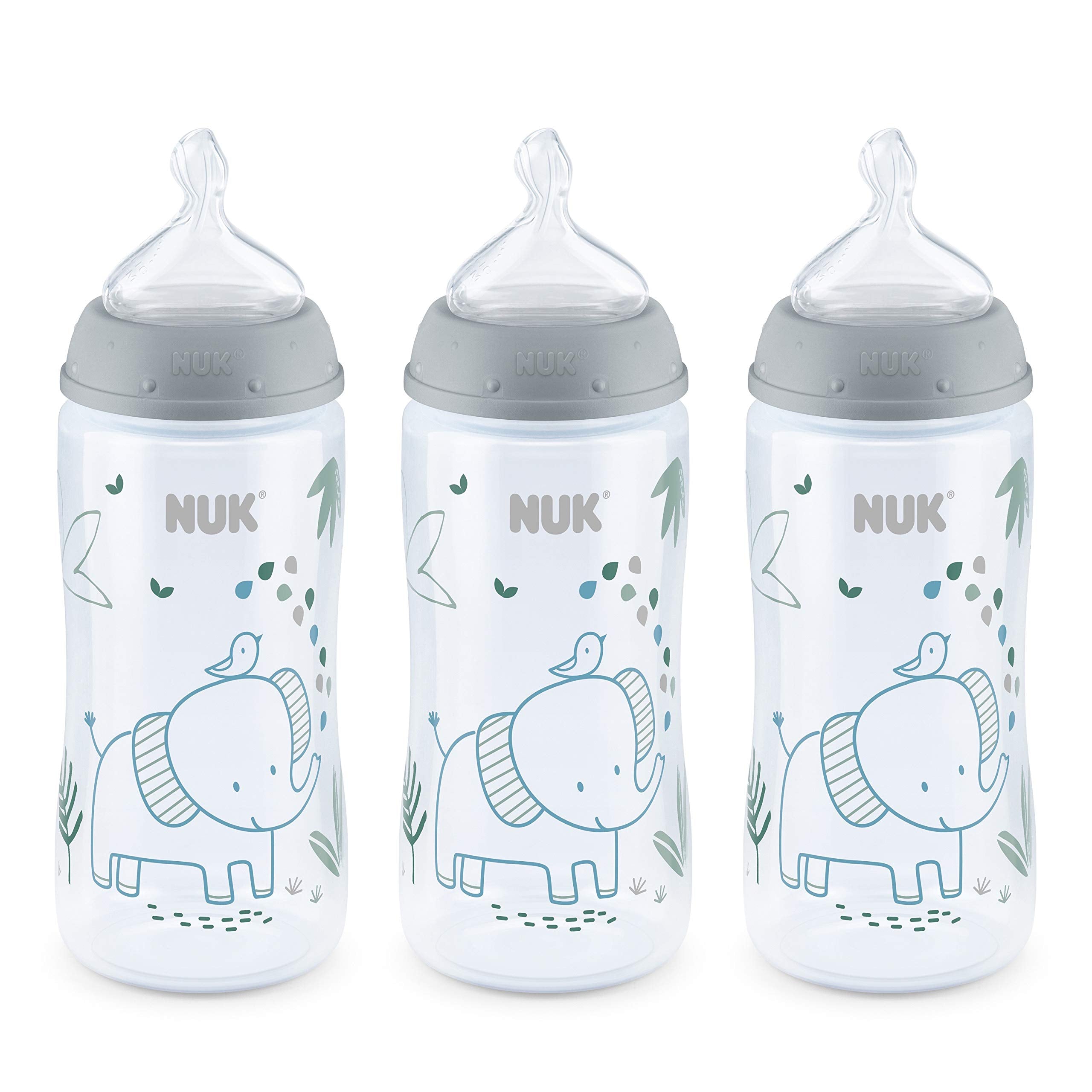 NUK Smooth Flow Anti-Colic Baby Bottle, 10 oz (300 mL), Grey Elephant, 3 Pack