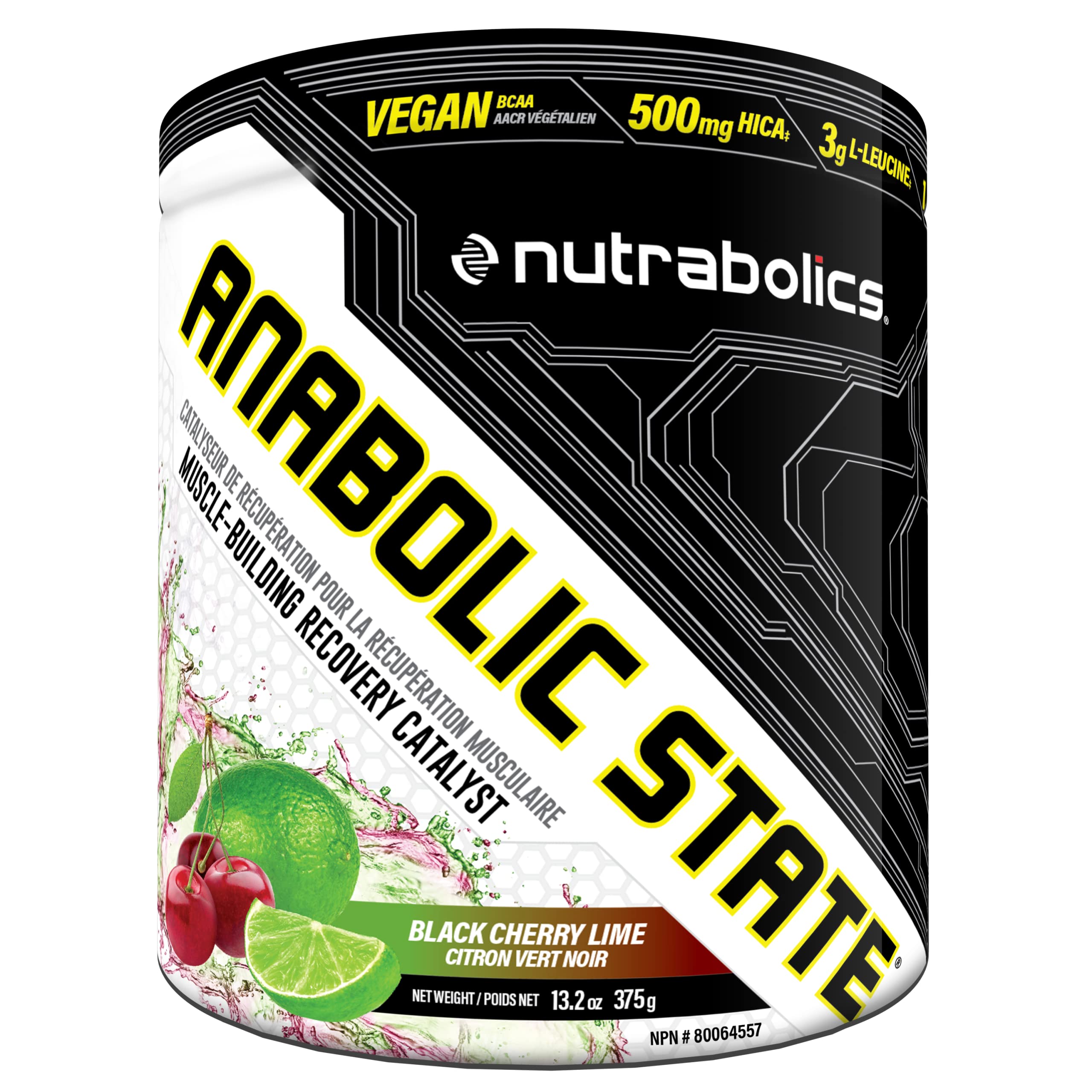 Anabolic State BCAA Black Cherry Lime 30 Servings, Pre Post Workout Powder To Support Muscle Recovery, Glutamine,