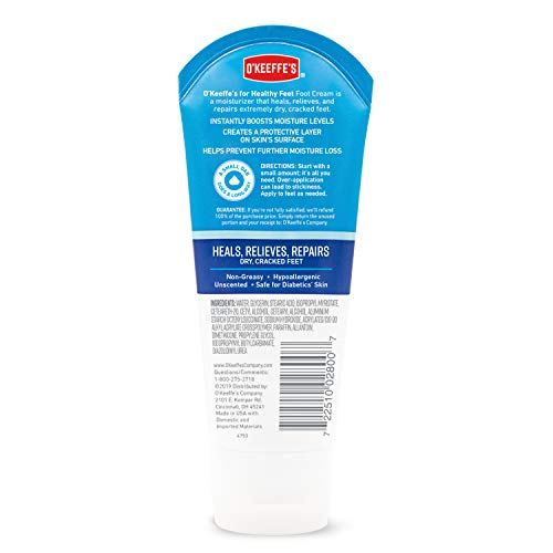 O'Keeffe's Healthy Feet Foot Cream, Healing Moisturizer, Relieves and Repairs Extremely Dry Cracked Feet, Instantly Boosts Moisture Levels, Two 3oz/85g Tubes, (Pack of 2) 108485