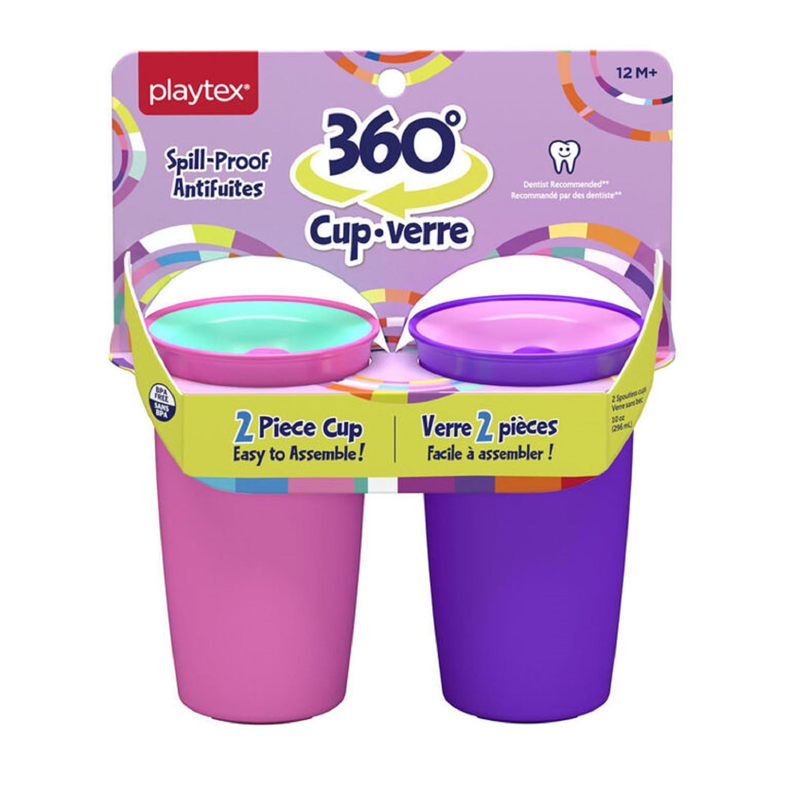 Transitioning to a regular, open cup can be tough for toddlers, and the spills can be quite messy. With the new Playtex Stage 2 Spoutless 360° Cup, it's now easier than ever! Playtex Baby Sippy Cup has the look and feel of an open cup, but with only two pieces! It's leak-proof and spill proof, which moms will love, and comes in bright colors kids' will love. Designed for children 12 Months+. Dishwasher safe and BPA Free.