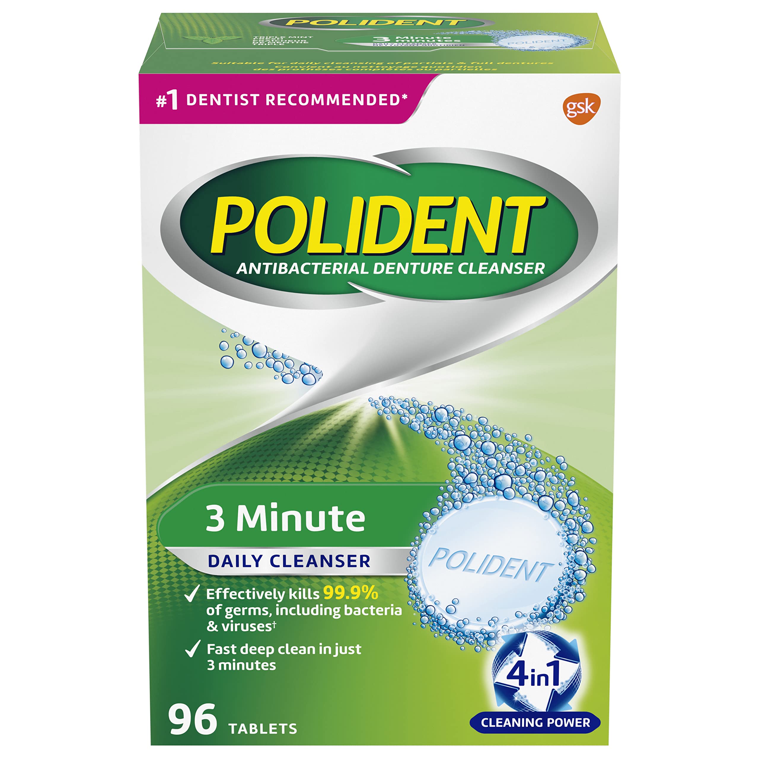 Polident 3 Minute Daily Denture Cleaner Triple Mint Fresh 96 Tabs (Packaging May Vary)