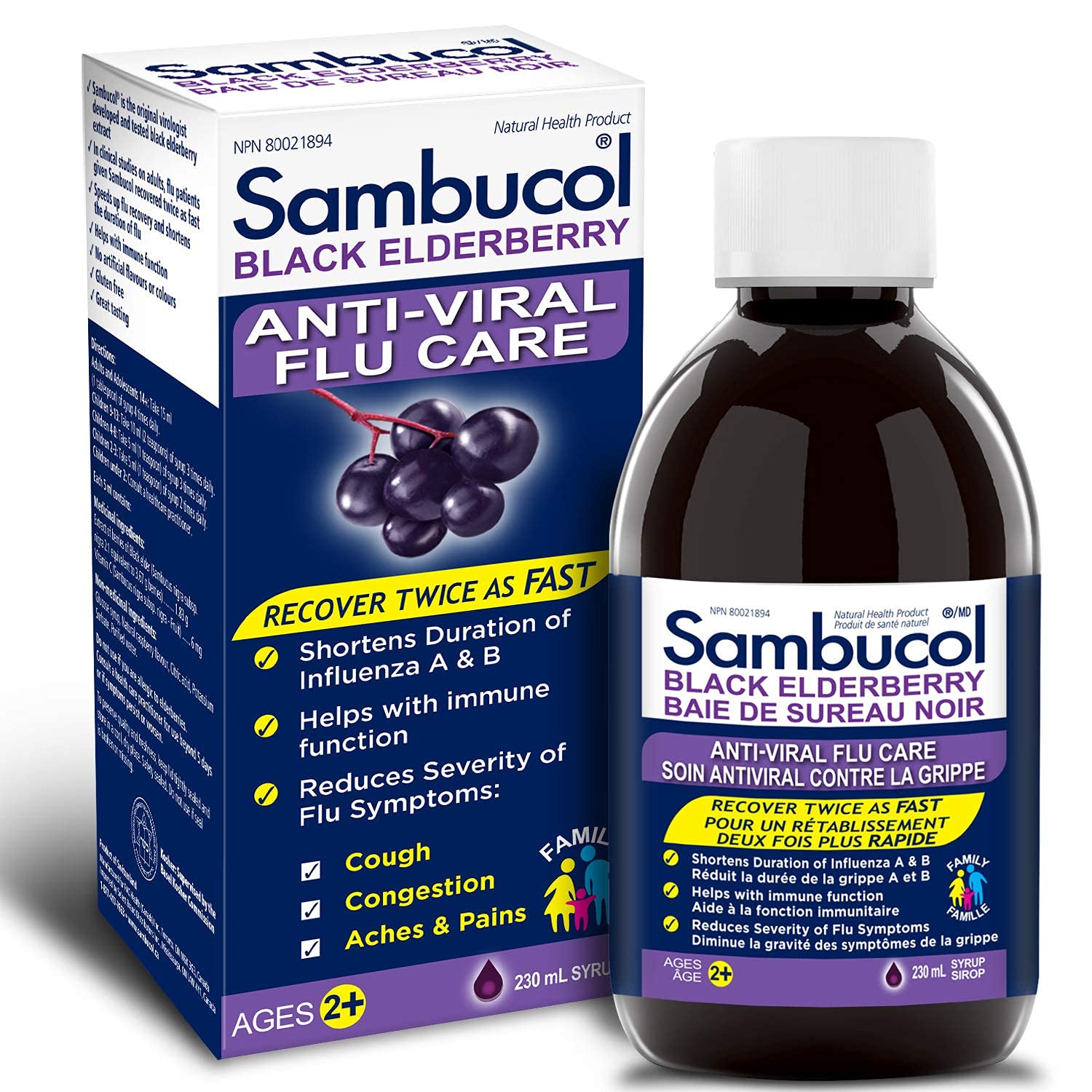 Sambucol Black Elderberry Anti-Viral Flu Care | Quickly Relieves Cold & Flu Symptoms | Immune Support & Antioxidant | Ideal for Families | Syrup, 230 mL, blue