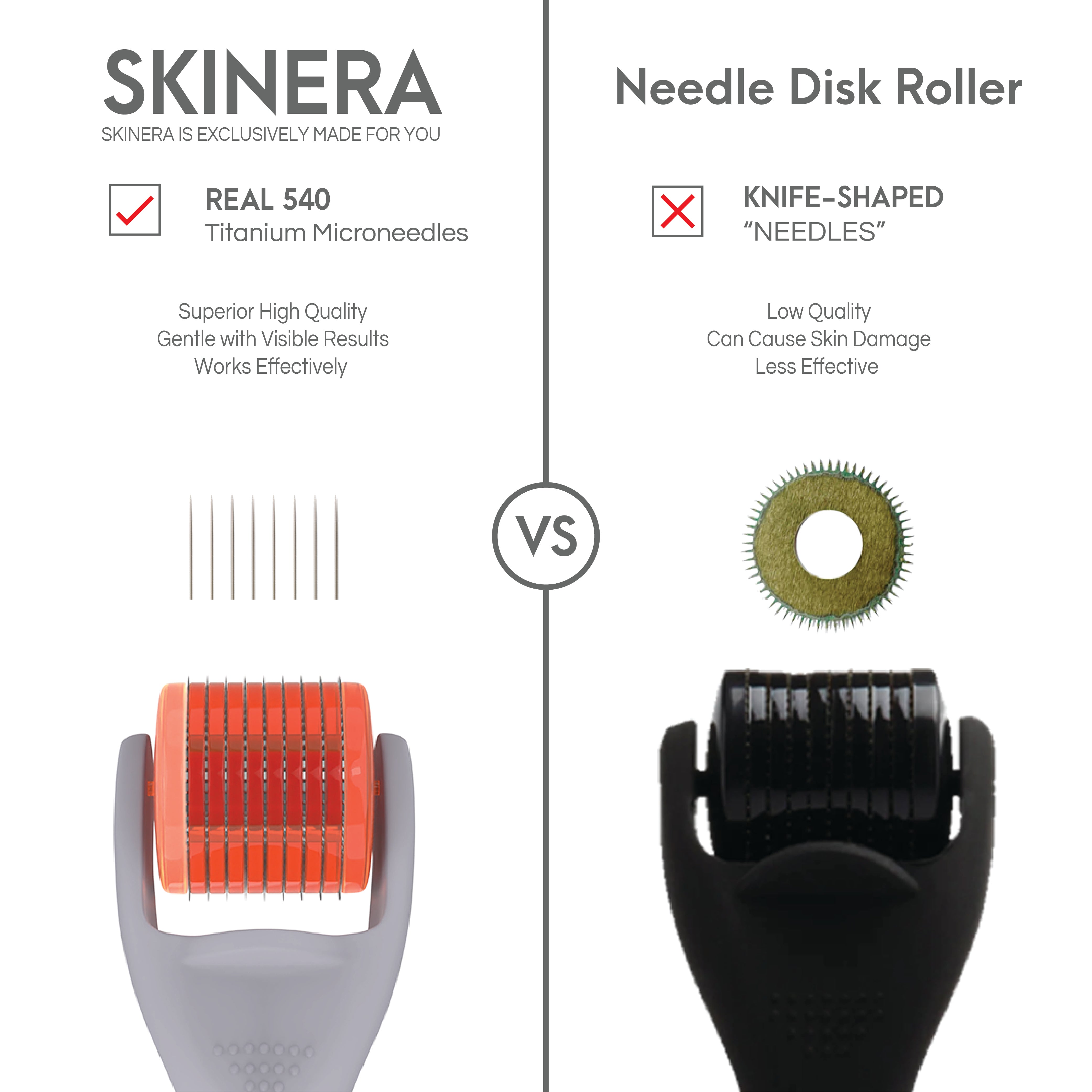 Skinera Derma Microneedling Roller (High End) - 0.5mm Titanium Needles - 540 Needles - For Men and Women - Beard Roller Face Roller (Matte Grey)