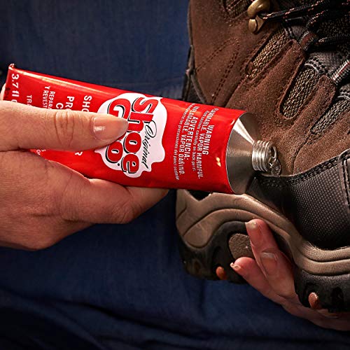 The Ultimate Performance Shoe Goo is great for shoe repairs and is just about invisible so you won't be able to see it after your shoes are fixed and you're walking/running around free again.